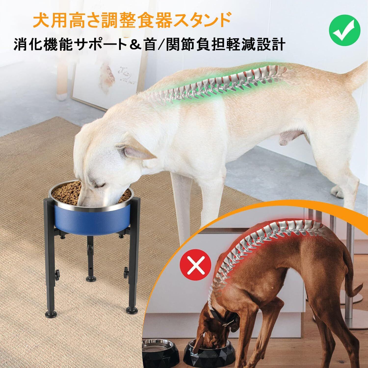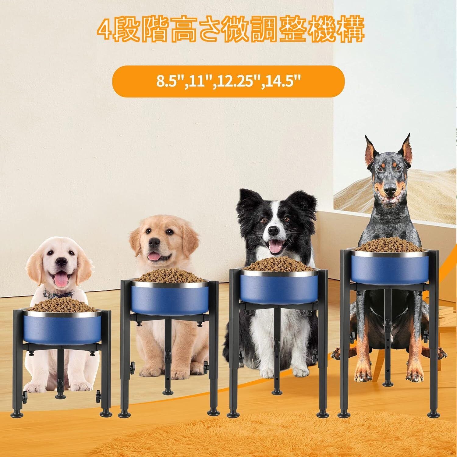 Cmswiftify 昇降式ペットボウルスタンド 犬 水飲み フードボウル 餌入れ食器台 犬 餌台 早食い防止 食器 犬 はやぐい防止皿 犬 中型犬~大型犬向け ペット 餌台 エサ台 4段階 高さ・幅広さ調節可能 餌入れ 犬 ご飯台【スタンドのみ】