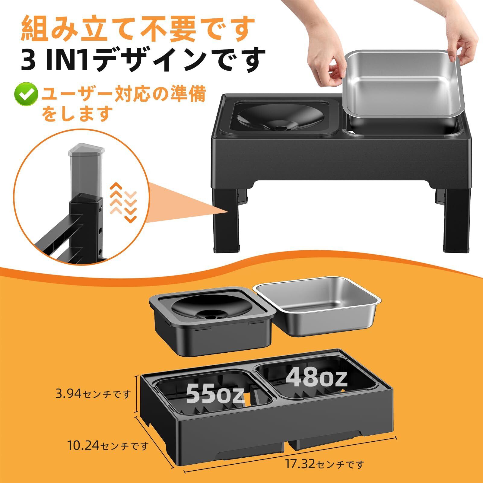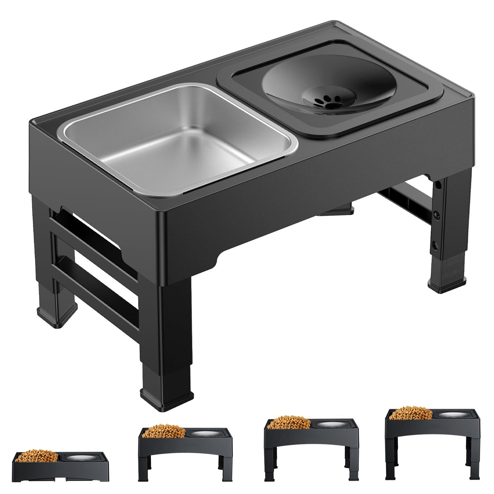 CARJILL PAW犬 食器台 エレベーティッドフィーダー 中型犬 大型犬 用 ステンレスボウル フード用 & フローティングボウル 水用 2個セット 高さ調節 可能 滑り止め 首・関節 負担 軽減 食べこぼし防止 ブラック.折りたたみ式