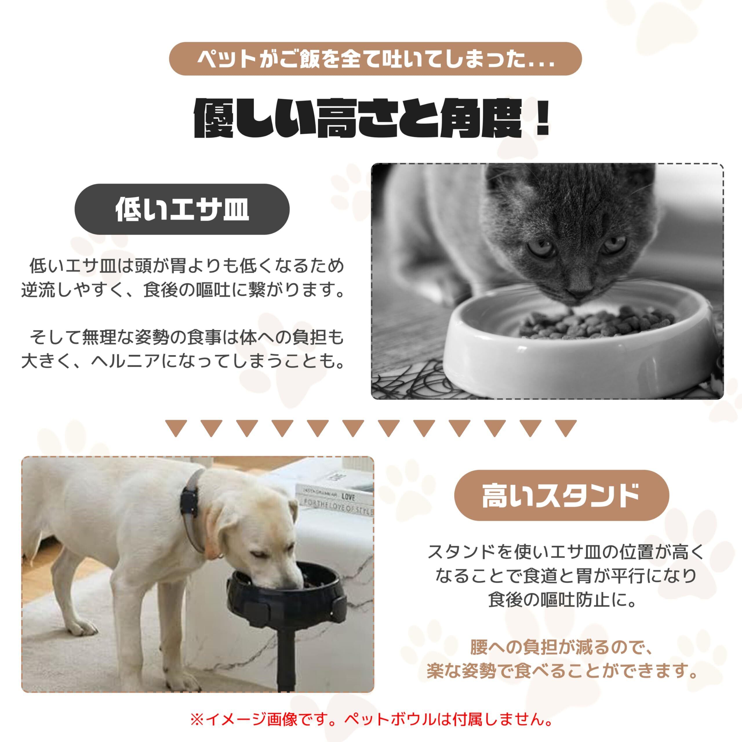 【15度傾斜】このペットフードボウルホルダーは15度の傾斜で設計でき、自然に食べ物を集め、給餌または飲水時のペットの首や背骨への負担を軽減します。 また、高さが低い姿勢なので食事による嘔吐を防ぎ、食べやすくなります。