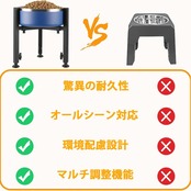 【超安定&防衛仕様】特殊防振ゴムマット+3点加重構造で転倒防止率98.5%。2.5kg超の大型犬が全力で食事しても揺れなし。食器固定用シリコーンガード付きで皿の横滑りを完全ブロック。ABS強化樹脂+アルミ合金フレームで10年間使用耐久付き