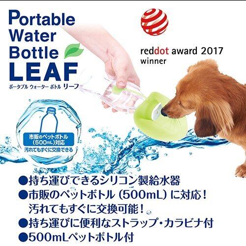 お散歩中のわんちゃんの水分補給やトイレの後処理に便利なシリコン製給水器。ストラップとカラビナ付きなので持ち運びにも便利。市販のペットボトル(500mL)※にも対応しているので、汚れてもすぐに交換できて清潔。(※口径や形状が合わないものもあります)ドイツの2017年「レッドドット・デザイン賞」受賞。