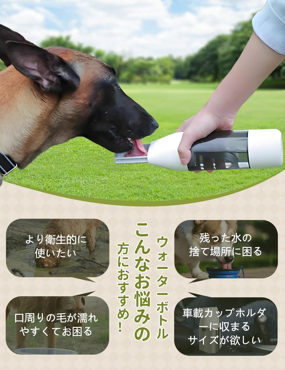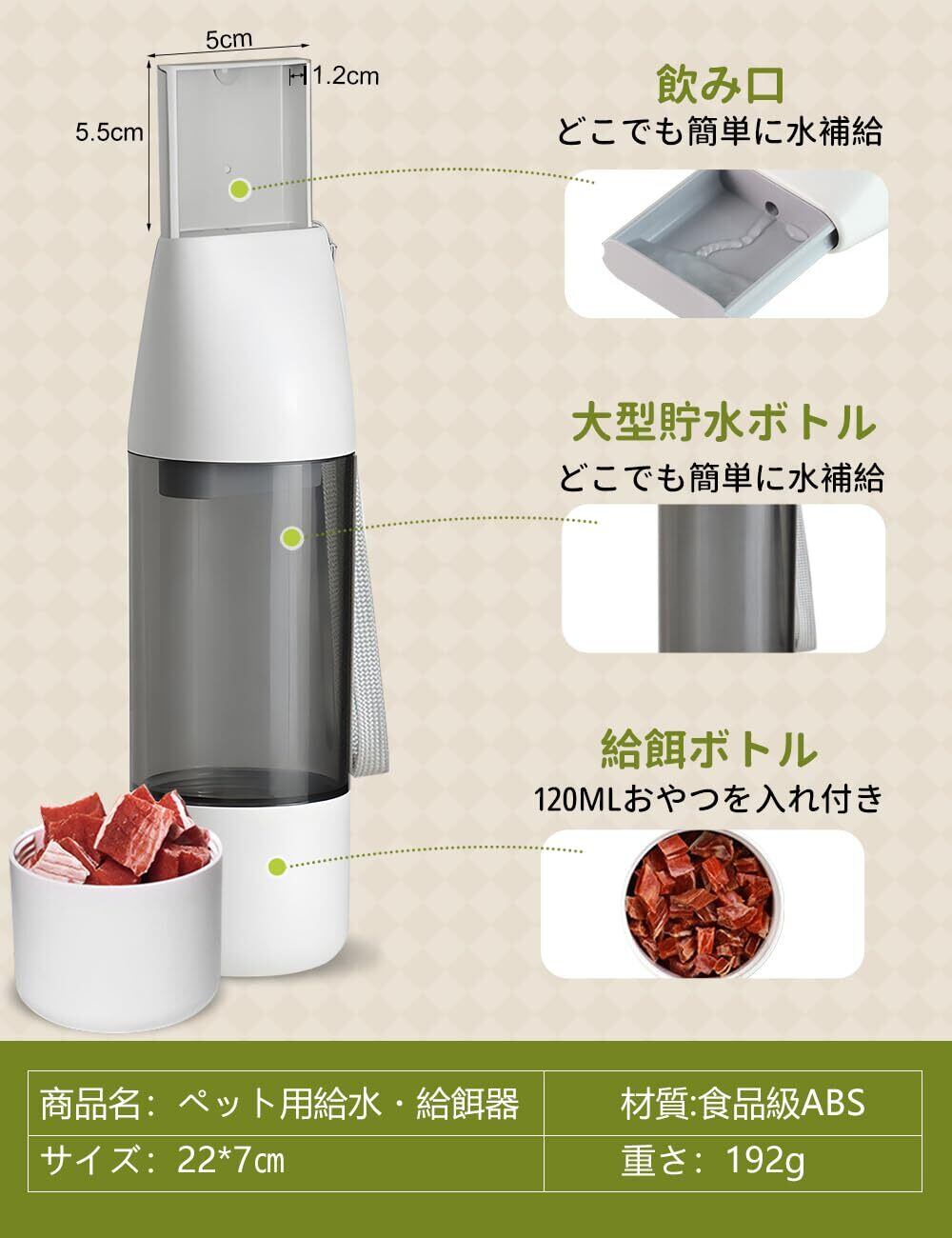 ペットウォーターボトル 犬 水筒 給水器 餌やり 押し込みポップアップ式 ペット用水飲みボト 犬グッズ お散歩用水筒 犬 水入れ 旅行 ペット 車 用品 持ち運び 携帯 猫 餌 漏れ防止(350ml+120ml)