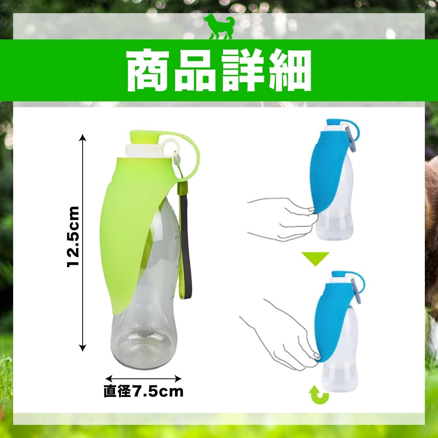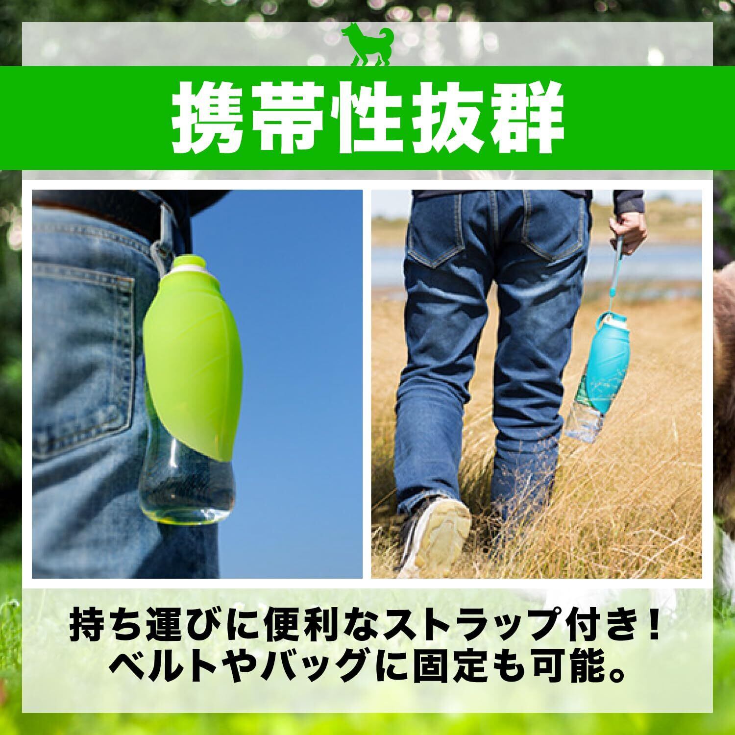 【ペット散歩必需品】この携帯用ペットウォーターボトルは、犬の散歩中に手軽に水分補給ができるよう設計された、実用的な犬用給水器です。