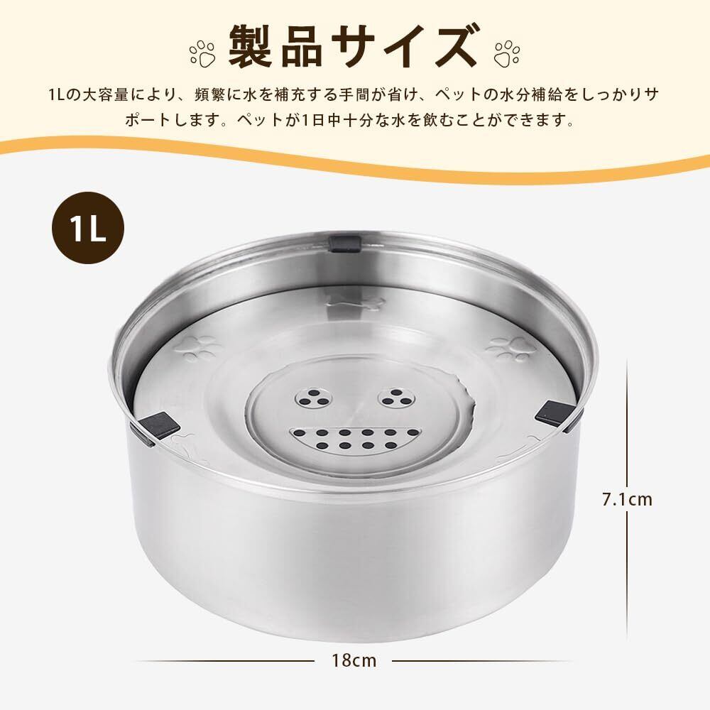 【大容量設計】1Lの大容量により、頻繁に水を補充する手間が省け、ペットの水分補給をしっかりサポートします。ペットが1日中十分な水を飲むことができます。