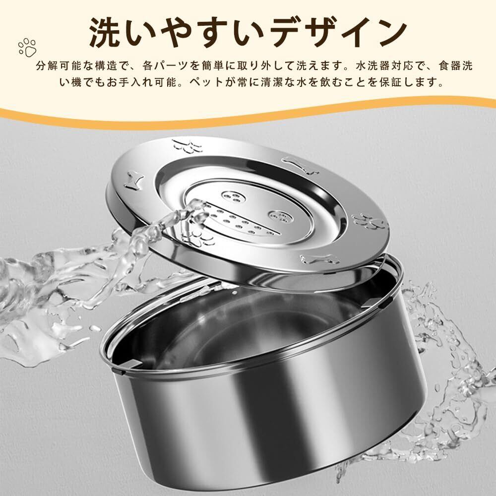 【洗いやすいデザイン】分解可能な構造で、各パーツを簡単に取り外して洗えます。水洗器対応で、食器洗い機でもお手入れ可能。ペットが常に清潔な水を飲むことをします。