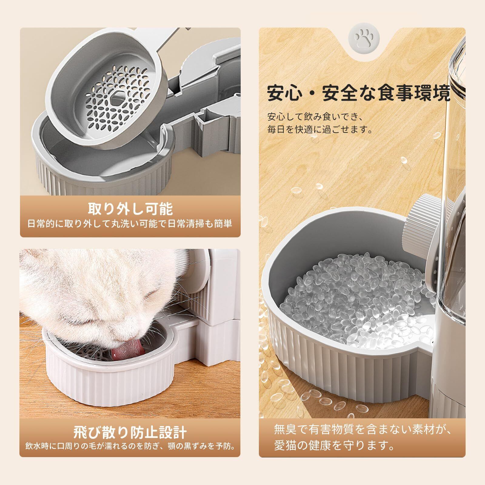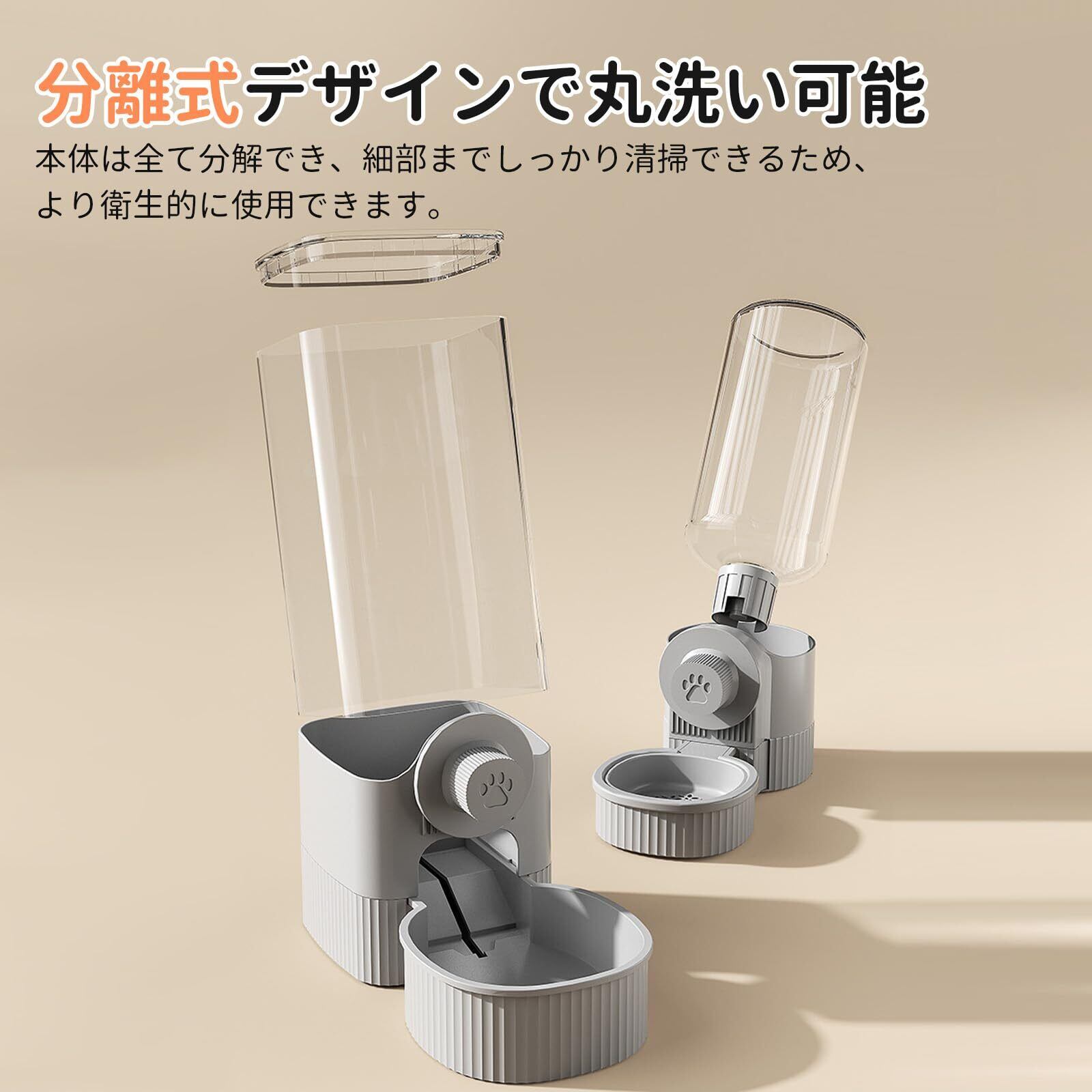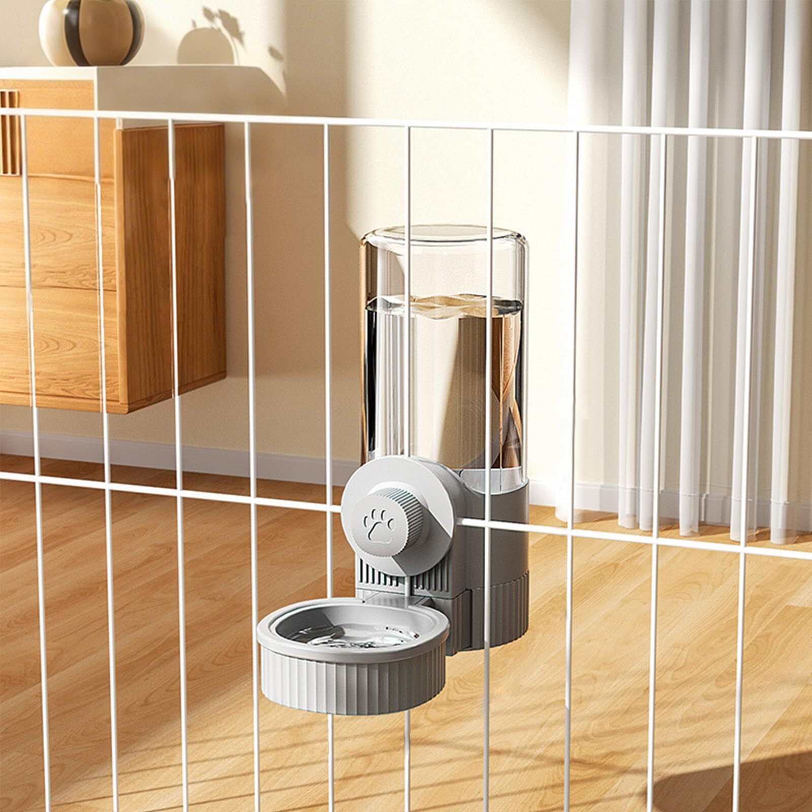 Essgudo ペット用 自動給水器 ケージ取付 吊り下げ式 大容量 電源不要 透明タンク 清潔簡単 簡単設置 ウォーターボトルタイプ 猫 犬 うさぎ用 フードボウル付き グレー 520ml