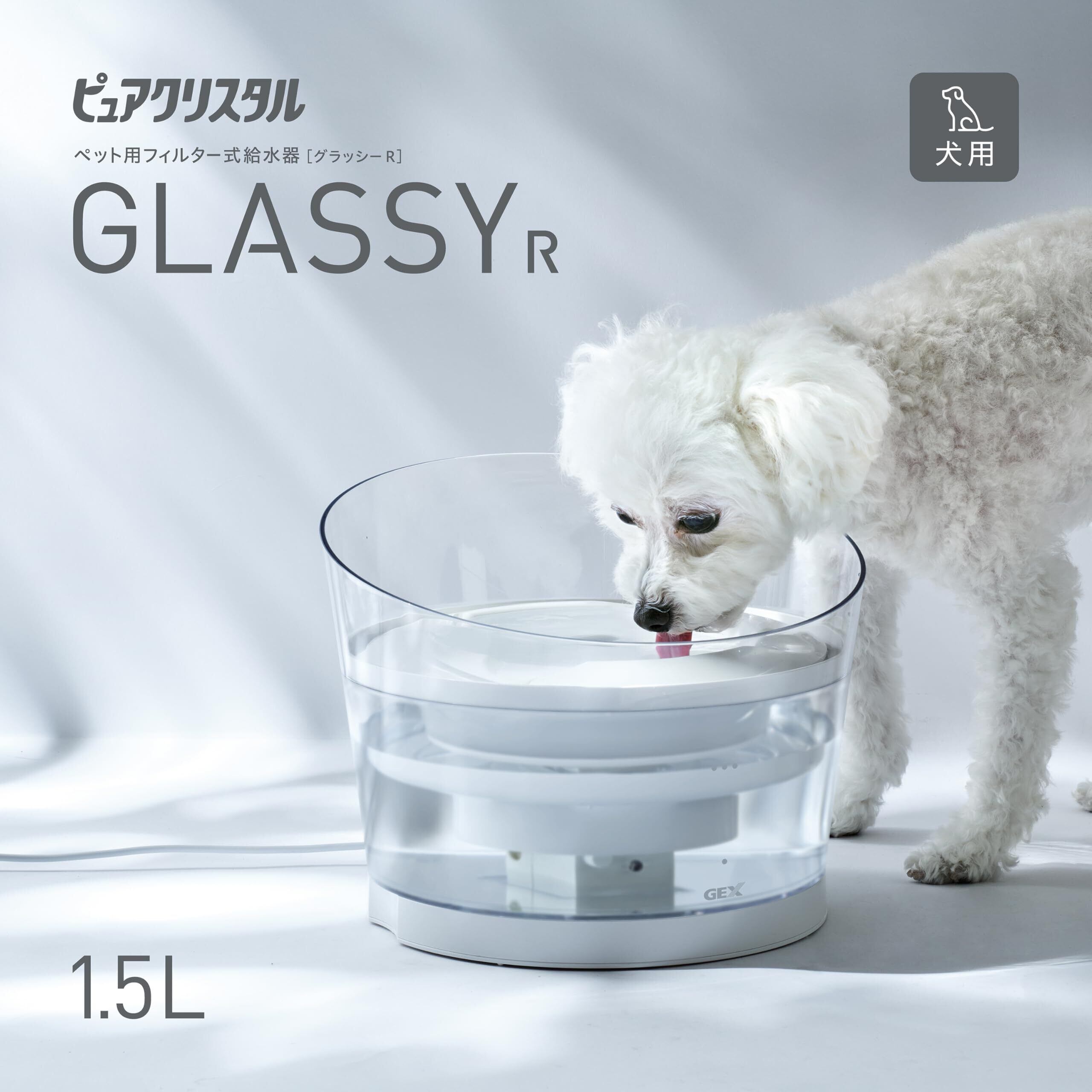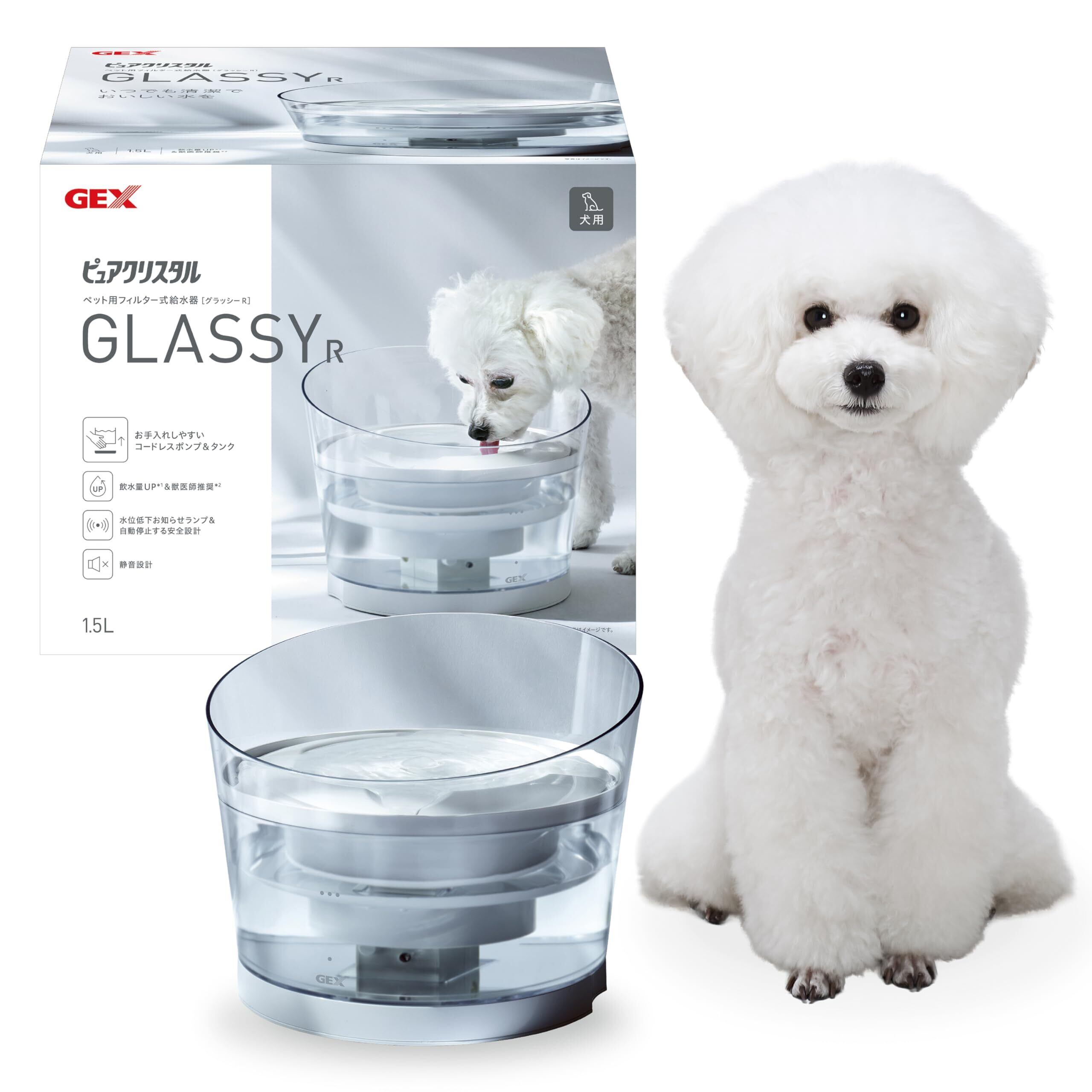 ジェックス ピュアクリスタル グラッシーR 犬用 1.5L フィルター式給水器 コードレスポンプ&タンク USB電源 静音 フィルター付き