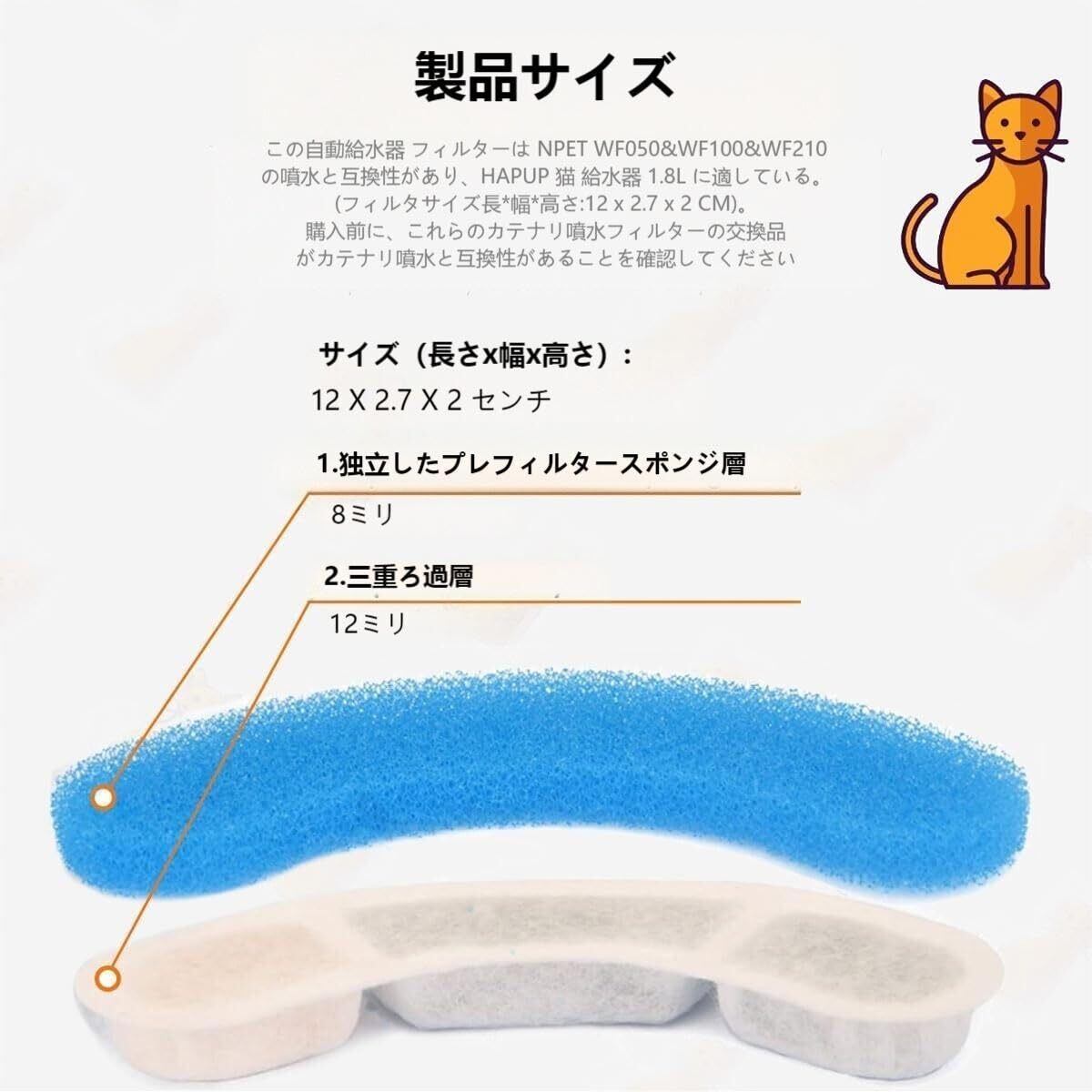 【対応機種】この円弧形の交換用フィルター NPET 猫水飲み器 WF040、WF050TP、WF060、WF100、WF210 猫給水器と互換性がある。HAPUP 1.8L給水器 交換用フィルター、BDUN 2L 給水器用フィルター 品質を維持するために、フィルターは個別にパッケージ化され、密封されています。ペットにより清潔で健康的な水を提供します。