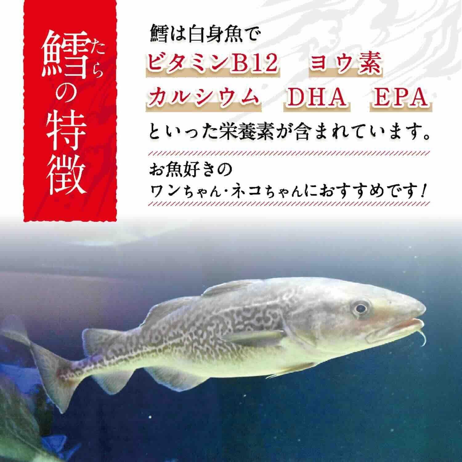 鱈は白身魚で高たんぱくな食材でビタミンB12 や ヨウ素・カルシウム・DHA・EPAといった栄養素が豊富に含まれています。食べやすく小分けにしやすいほぐしタイプ。