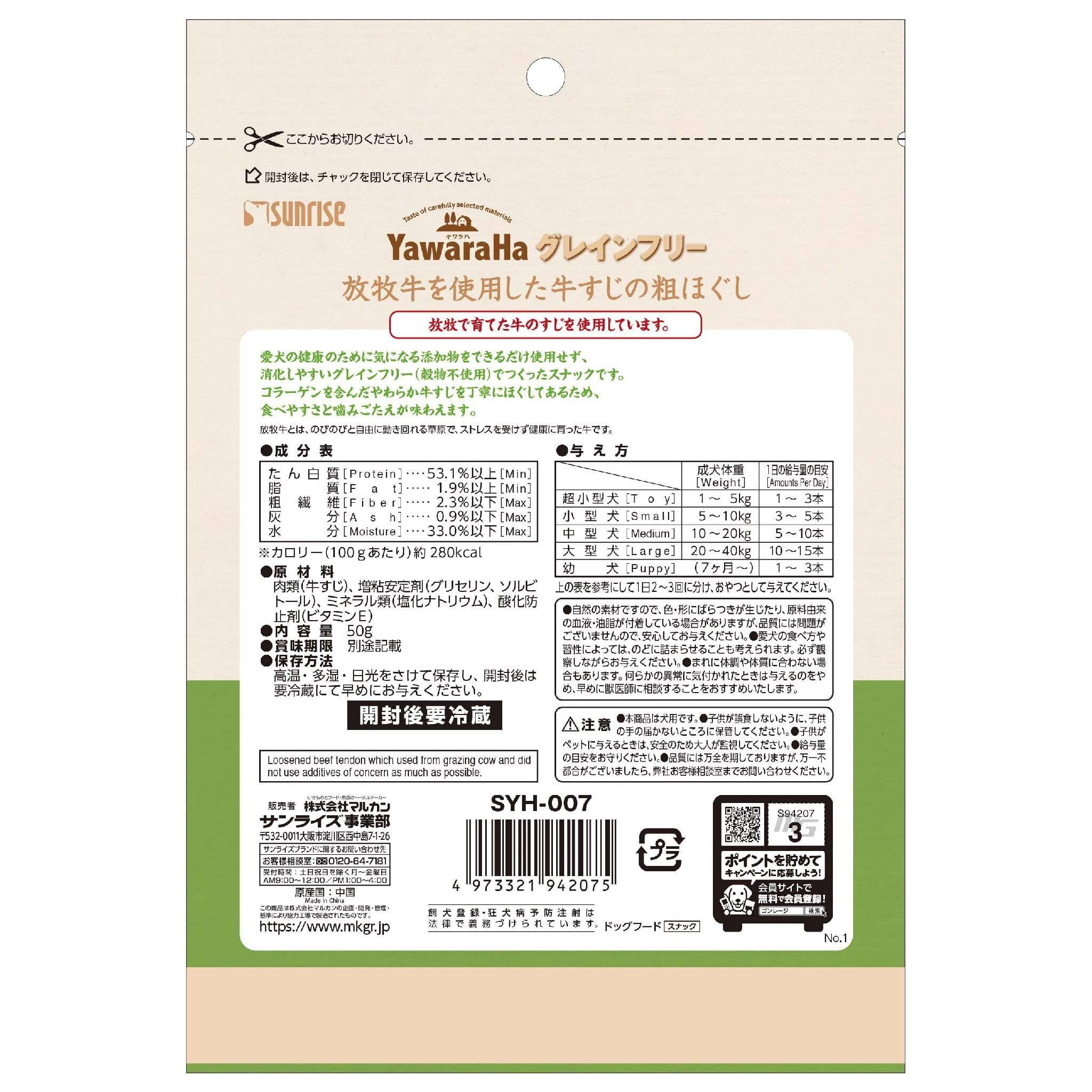 サンライズ ヤワラハ グレインフリー 放牧牛を使用した牛すじの粗ほぐし 50g 【2個セット】