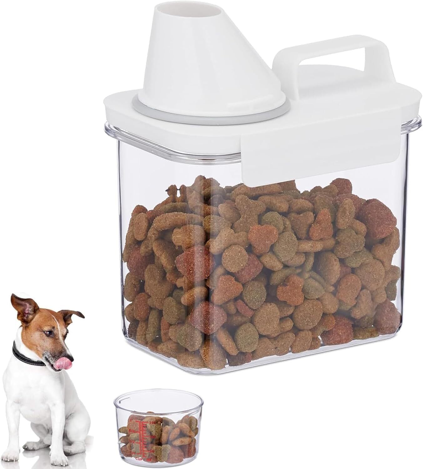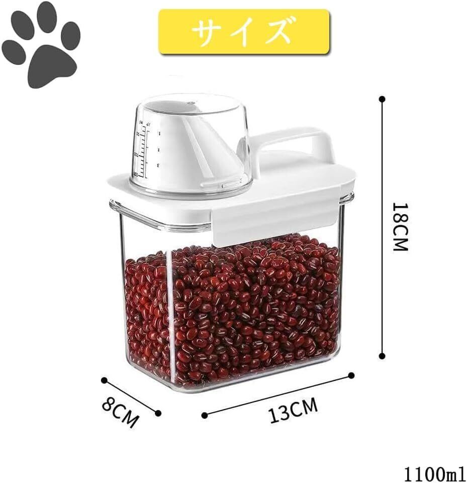 BTtime ペットフードストッカー 食品保存容器 密閉 大容量 犬 猫 大容量 ドライフード ドッグフード 湿気防止 透明 計量カップ付き (1.1L)