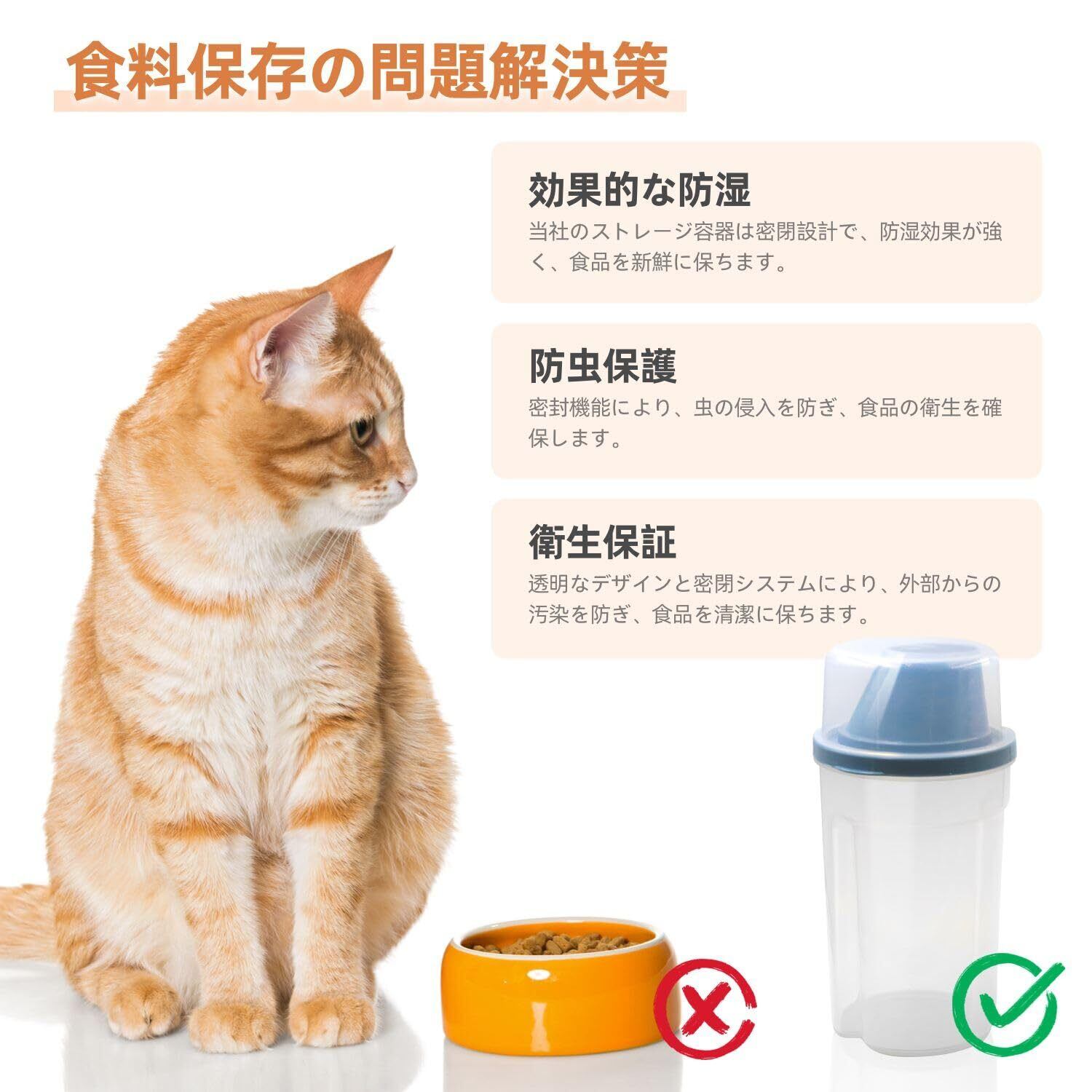 【目盛り付きで便利】容器に目盛りが付いており、計量カップも付属。ペットフードの量を正確に調整でき、日々の餌やりが簡単かつ便利です。透明なデザインにより、内容物の残量も一目で確認できます。、