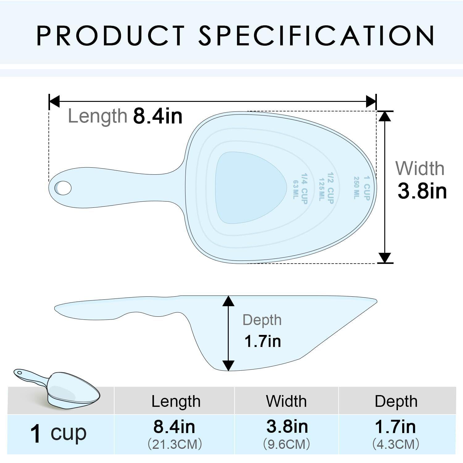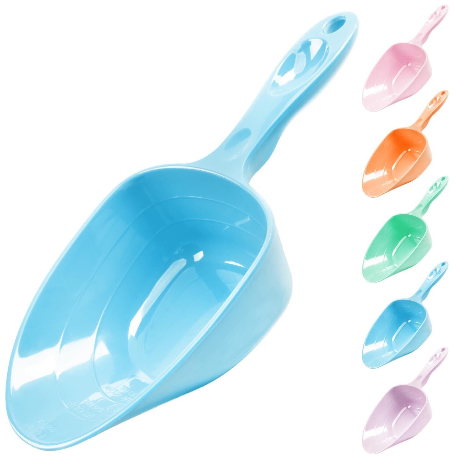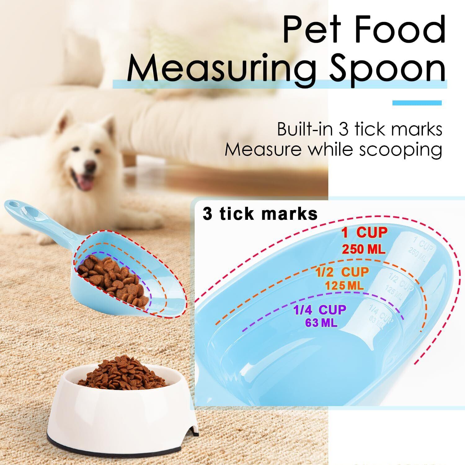 メラミン製ペットフード計量スプーン、1カップ、1/2カップ、1/4カップ、犬、猫、鳥、ウサギ用、明確な計量ライン付き、耐久性、人間工学に基づいたハンドル、食洗機対応-スカイブルー