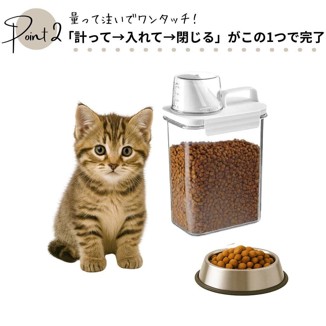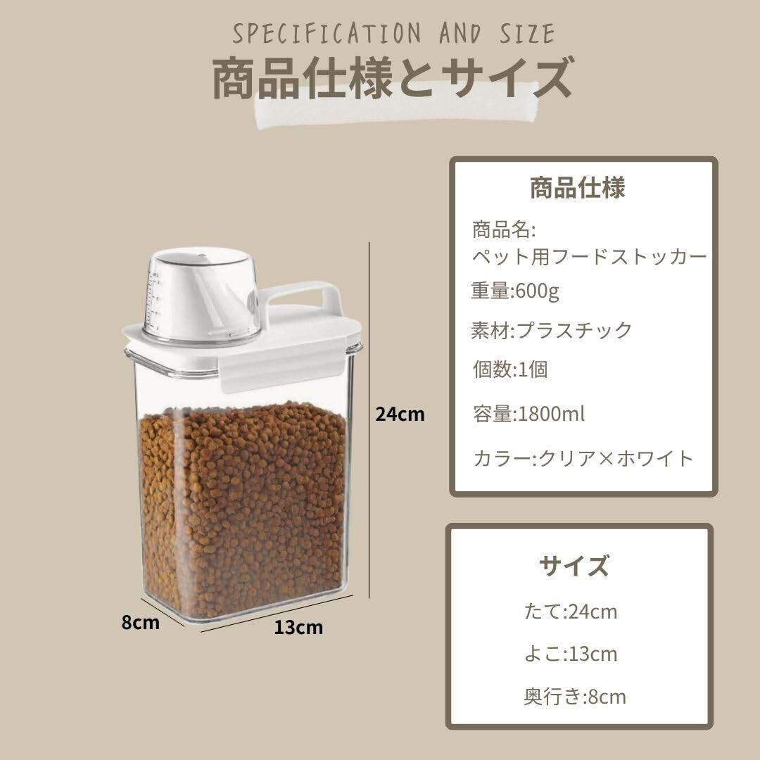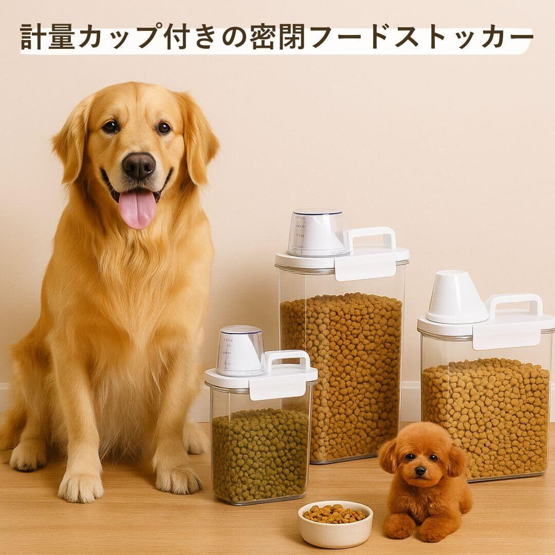 ペットフードストッカー 密閉容器 犬 猫 ドッグフード保存容器 計量カップ付き 透明 大容量 餌入れ 収納 1800ml