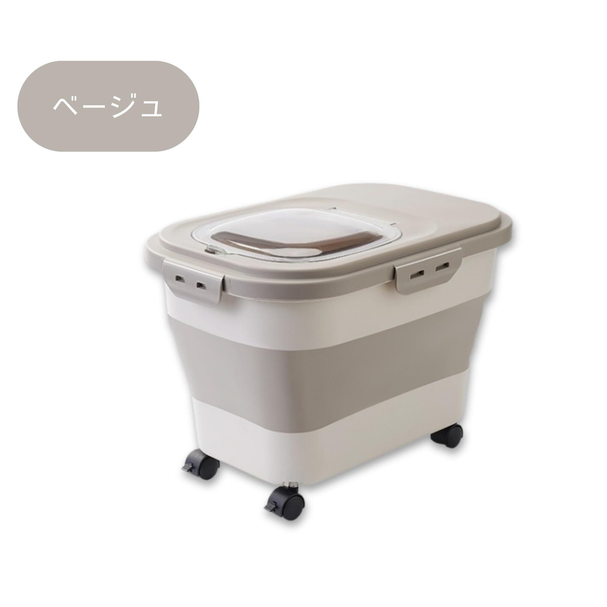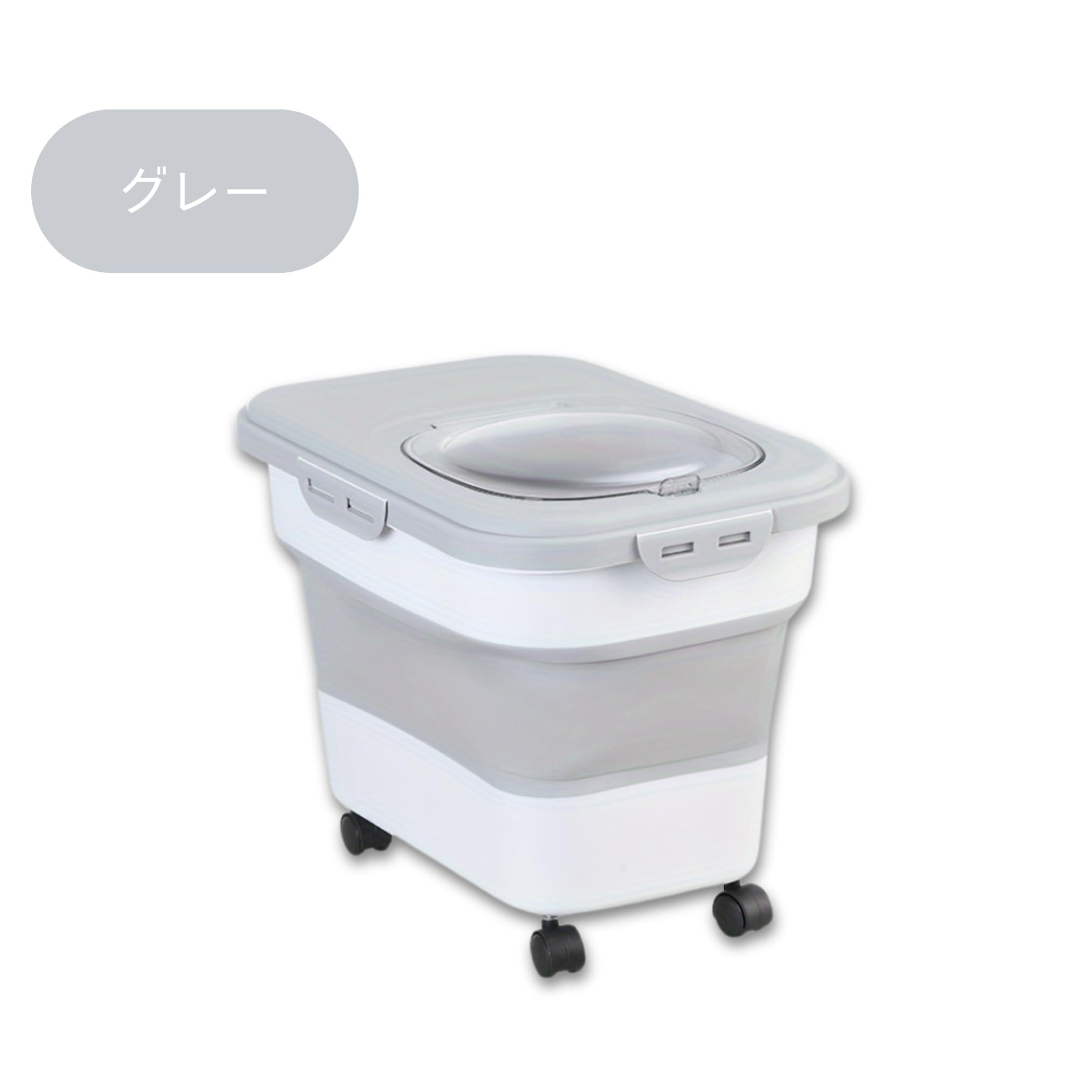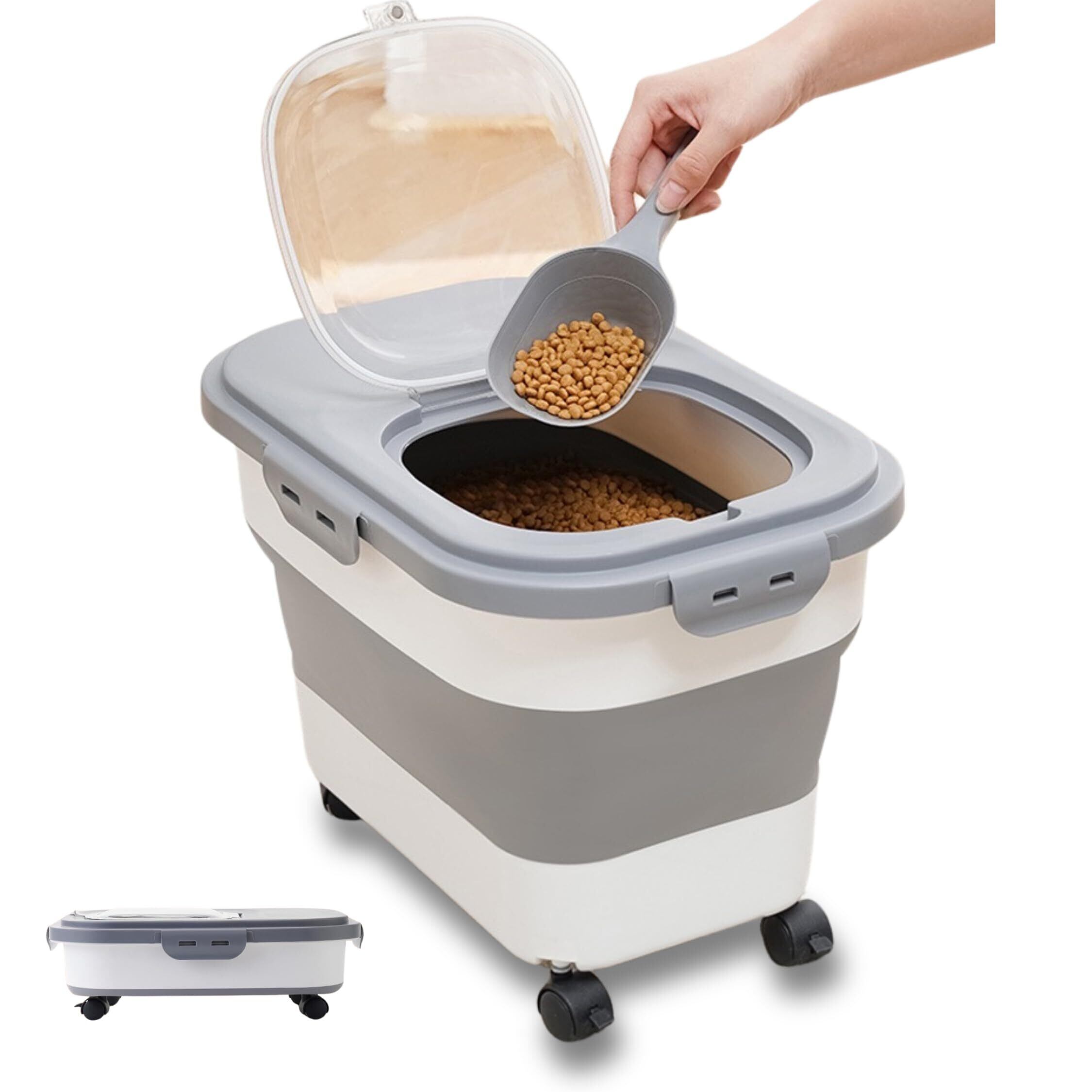 ROTTA ペットフードストッカー ドッグフード 20L大容量 ドライフード保存 フードストッカー 犬餌 猫餌 折りたたみ 密閉保存 防湿 防虫 湿気防止 簡単収納 キャスター付き 計量カップ スコップ付き 保存容器8~10kg キャスター付き 3色 (グレー)