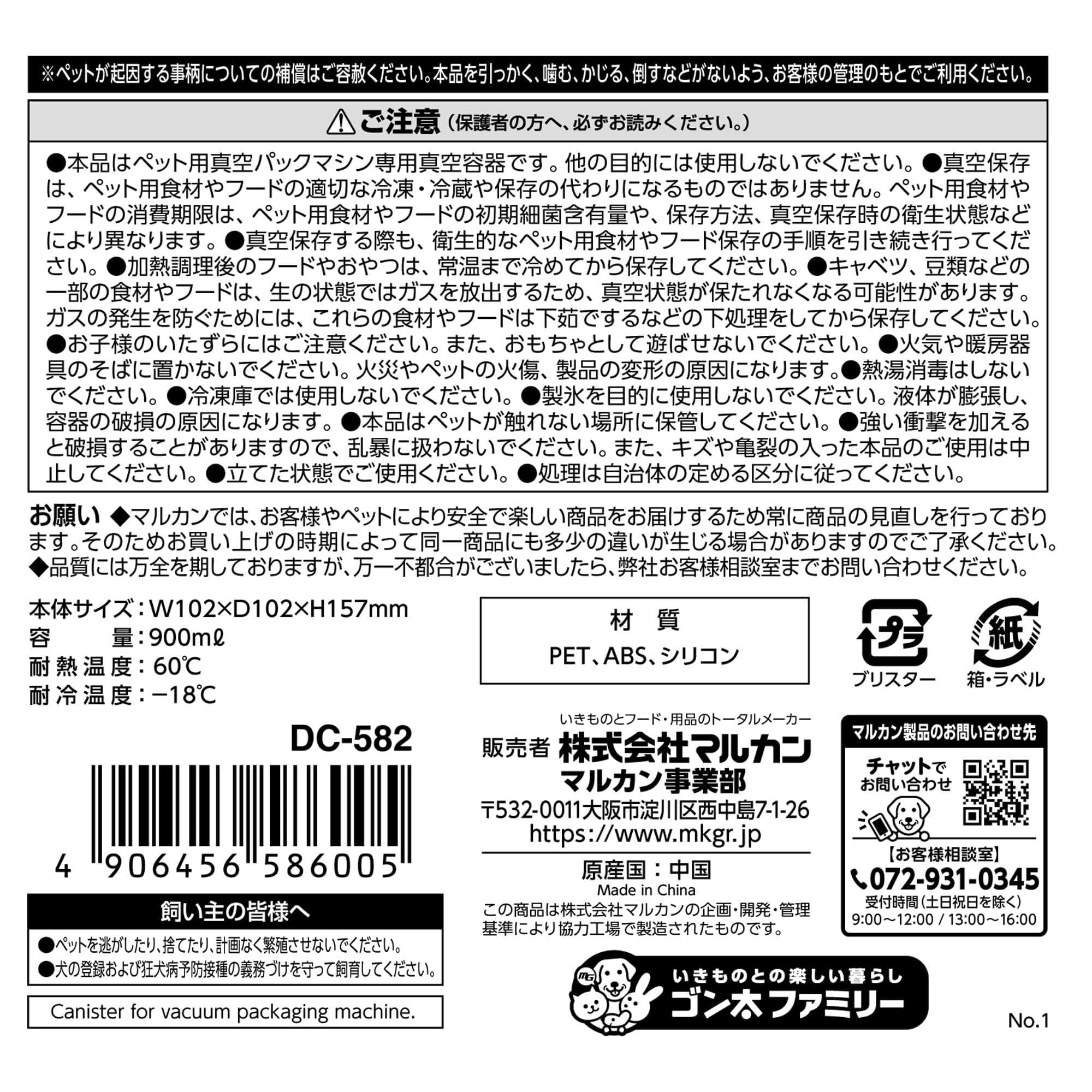 マルカン Auto真空パックマシンハンディタイプ用真空容器 湿気・酸化・害虫を防ぐ DC-582 真空パックマシン専用 犬・猫・うさぎ用