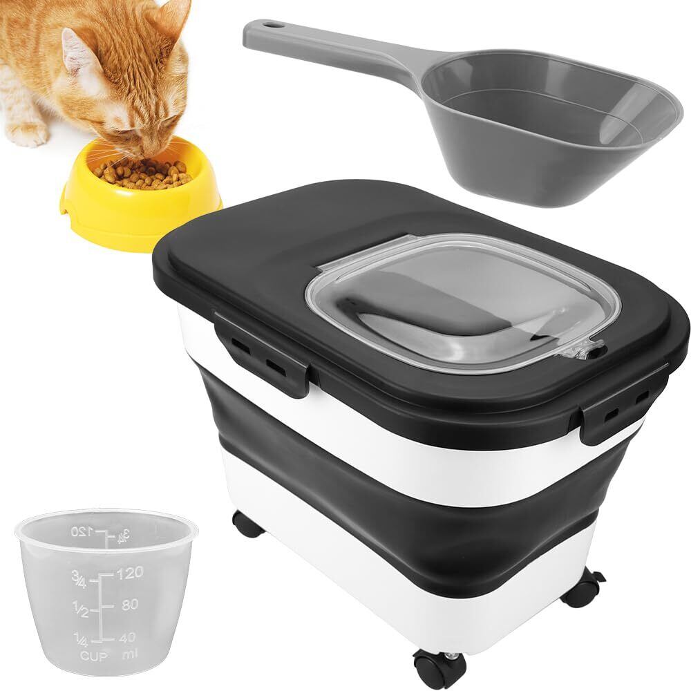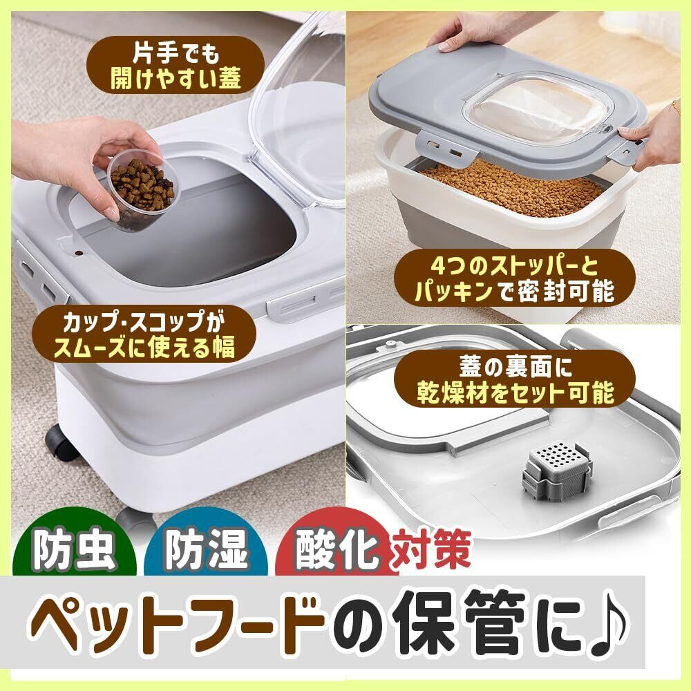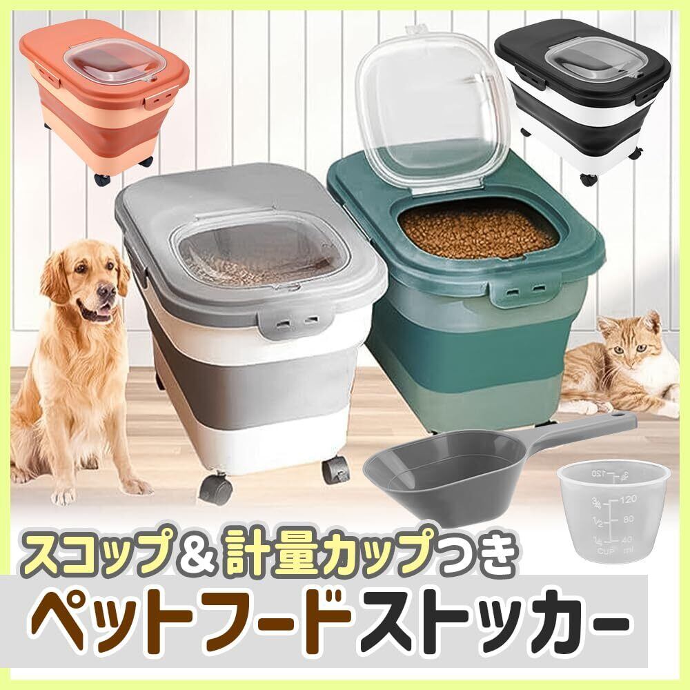 ペットフード保存容器 キャリー付き 20L コンパクト 折り畳み 鮮度キープ (ブラック)