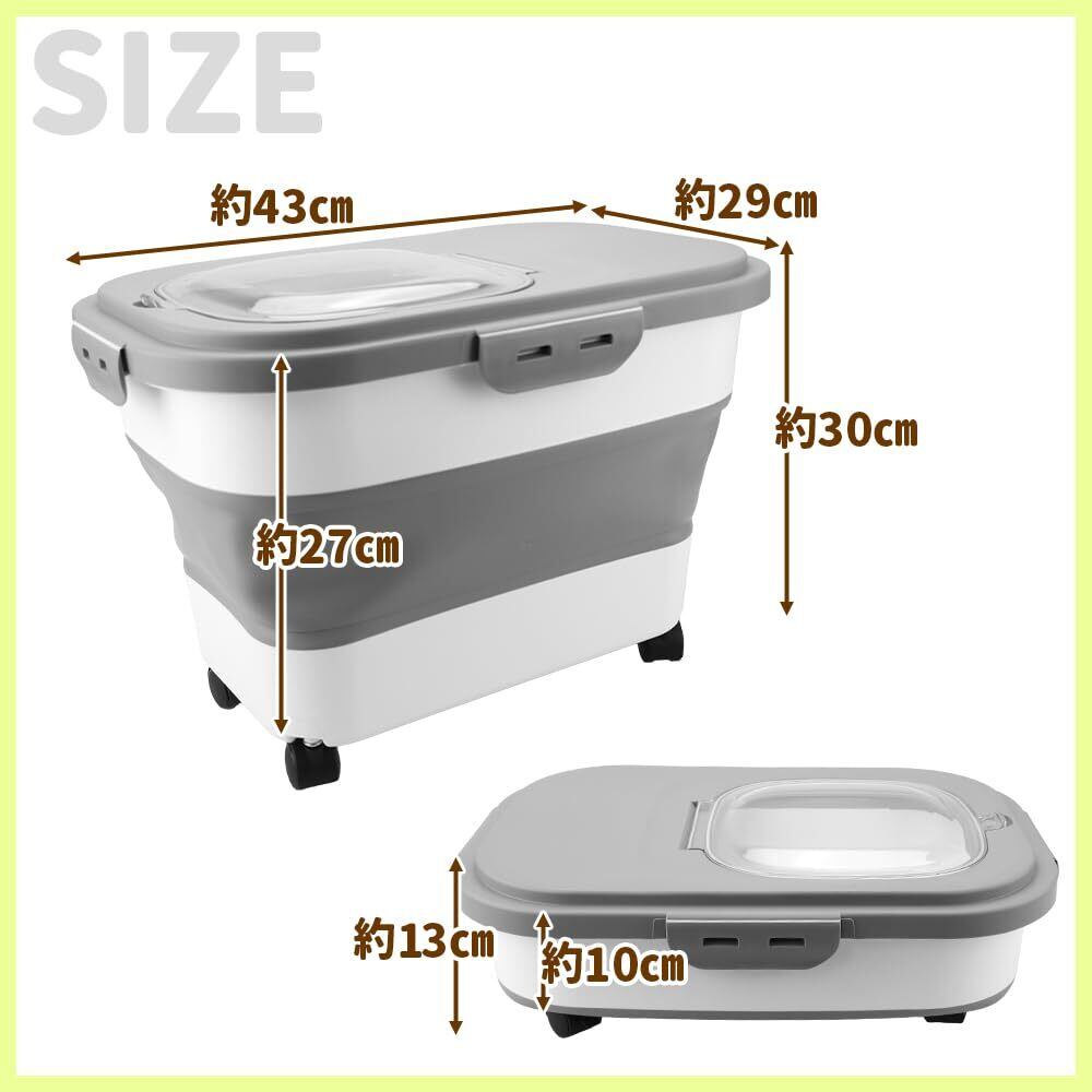 本体は中央部からコンパクトに折り畳める仕様により、未使用時でも保管場所に困りません。ドライフードであれば約10~15kgほどの量を入れられる大容量設計も魅力です。