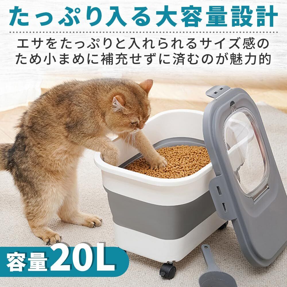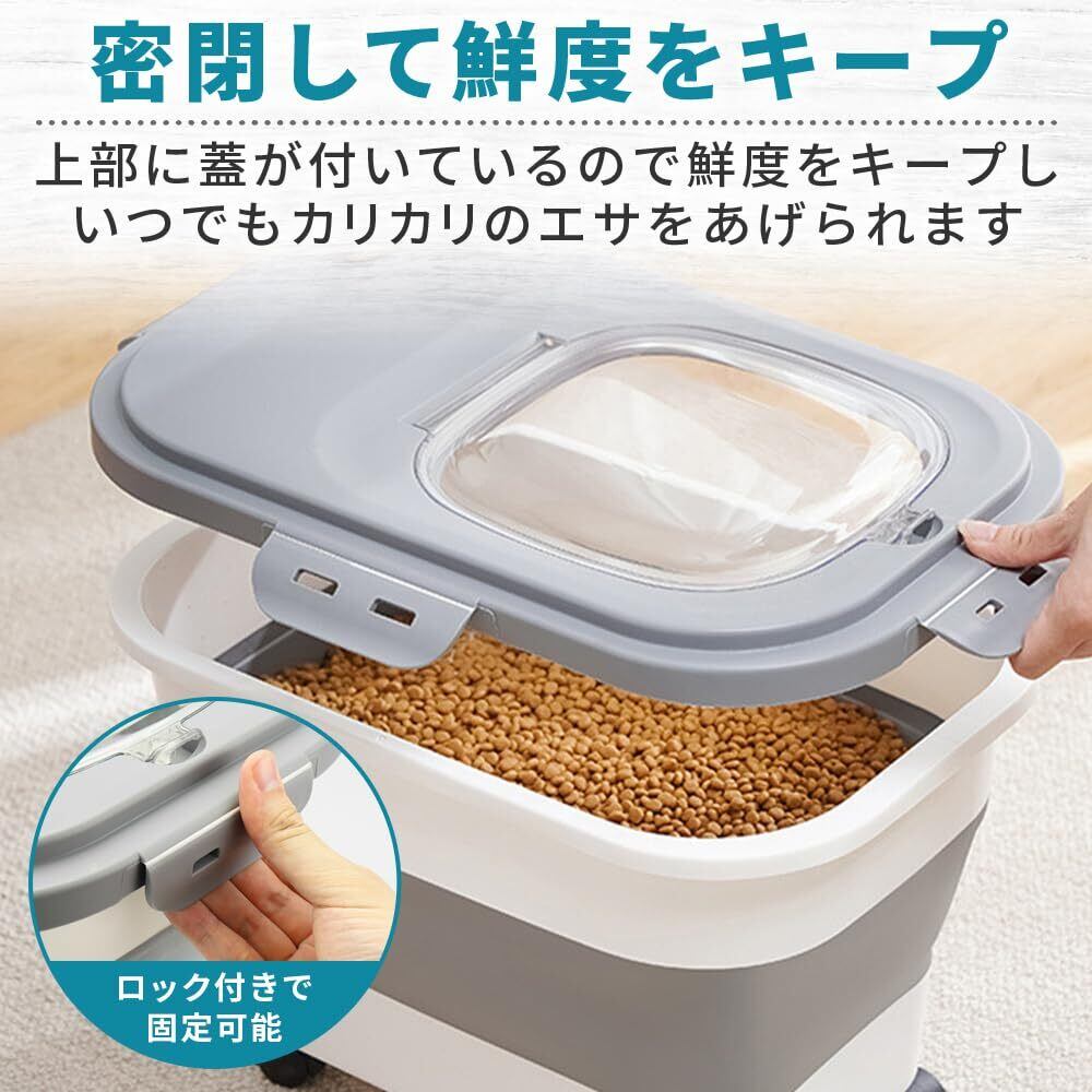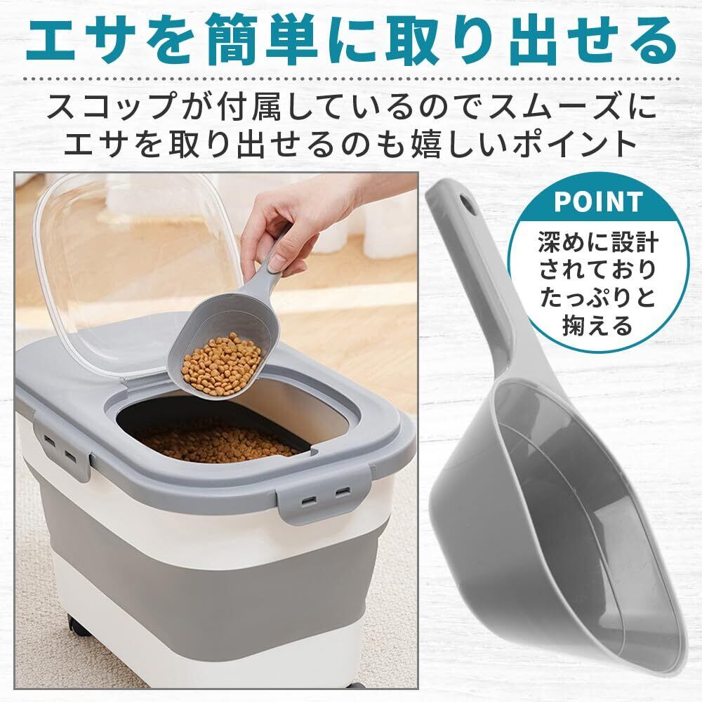 得楽商店 折り畳み式ペットフードストッカー スコップ&計量カップ付き 密閉保存 鮮度維持 (ダークグレー)