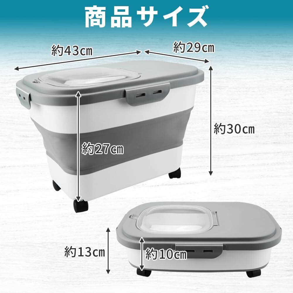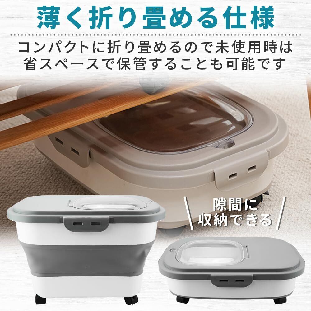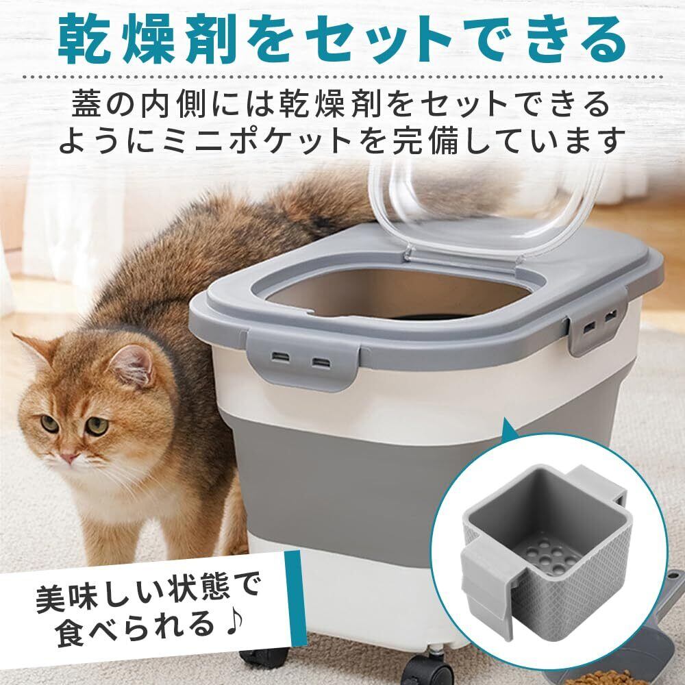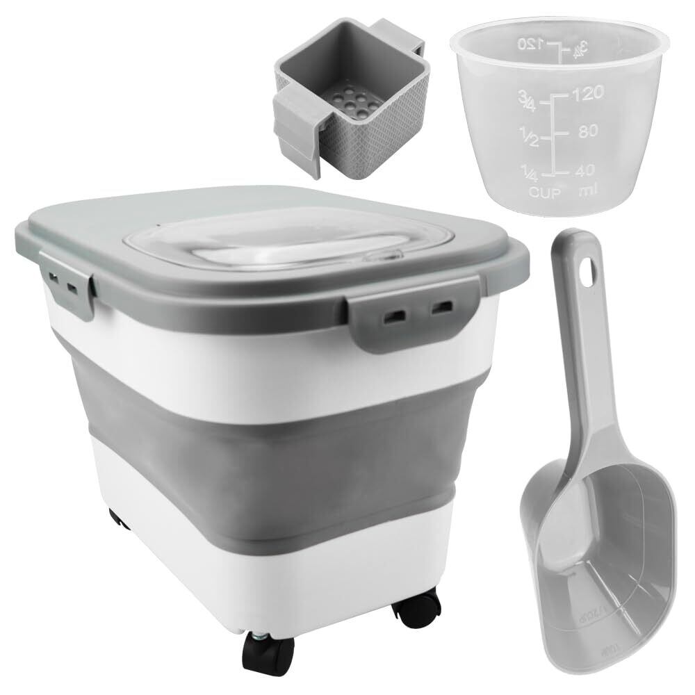 得楽商店 折り畳み式ペットフードストッカー スコップ&計量カップ付き 密閉保存 鮮度維持 (ダークグレー)