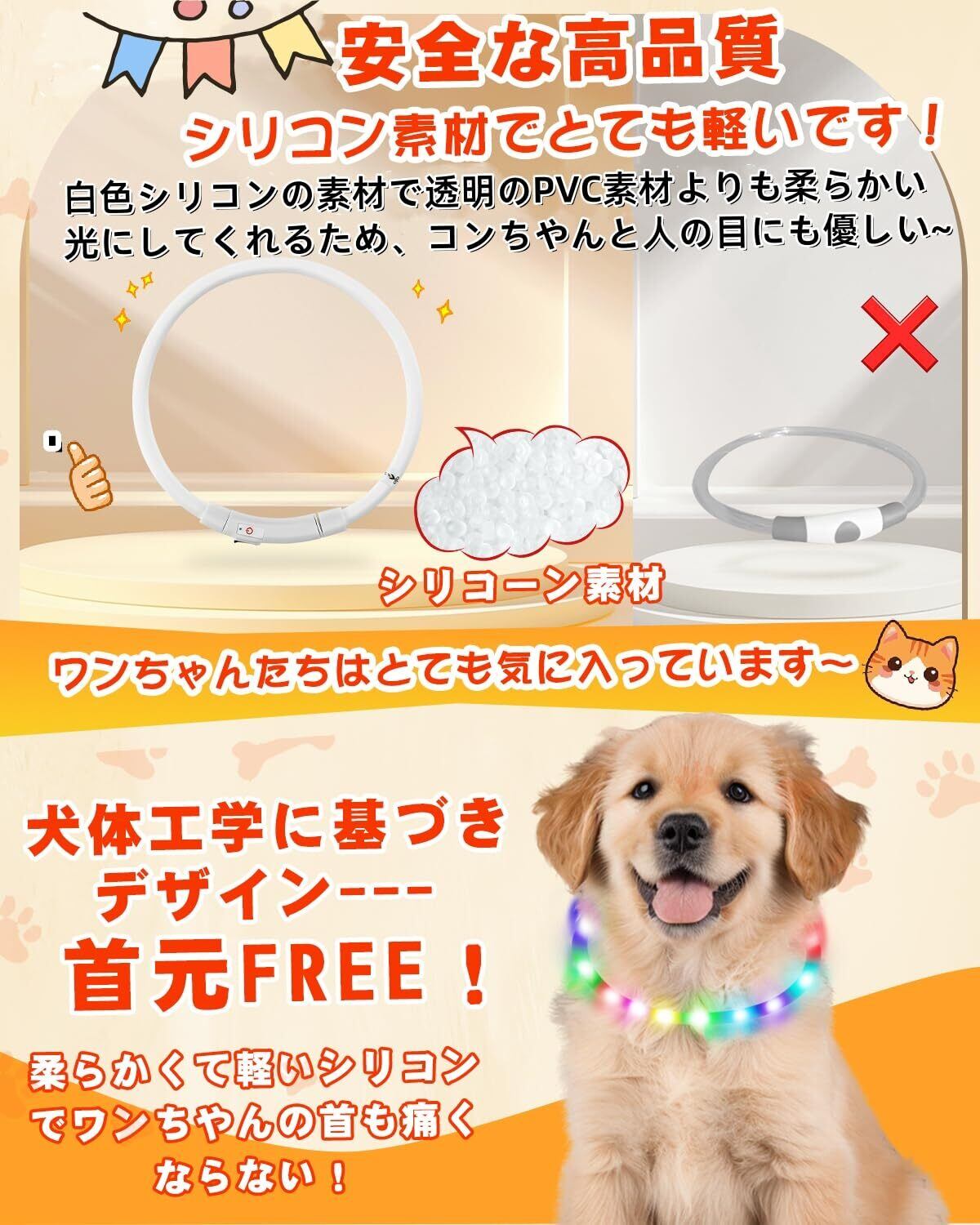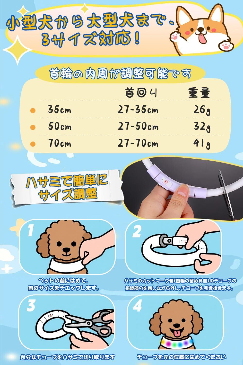 BaoCheng 光る首輪【LED輝度增加83%】犬 散歩 ライト 小型犬 中型犬 大型犬 ペット用品 サイズトリミング可能(35cm)