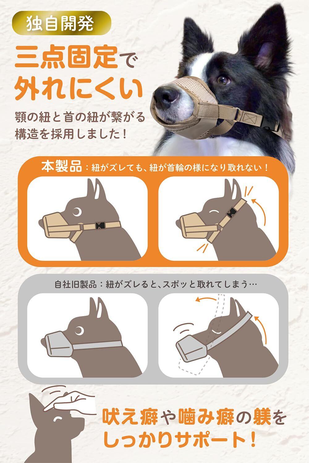 独自開発 三点で固定で外れにくい! : 首輪のような構造を一部に採用し簡単に取れにくいです。吠え癖や噛み癖の躾をしっかりサポートします。
