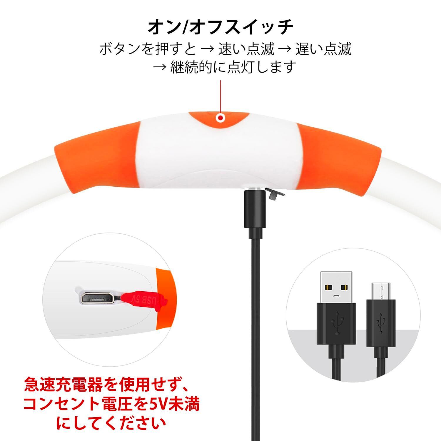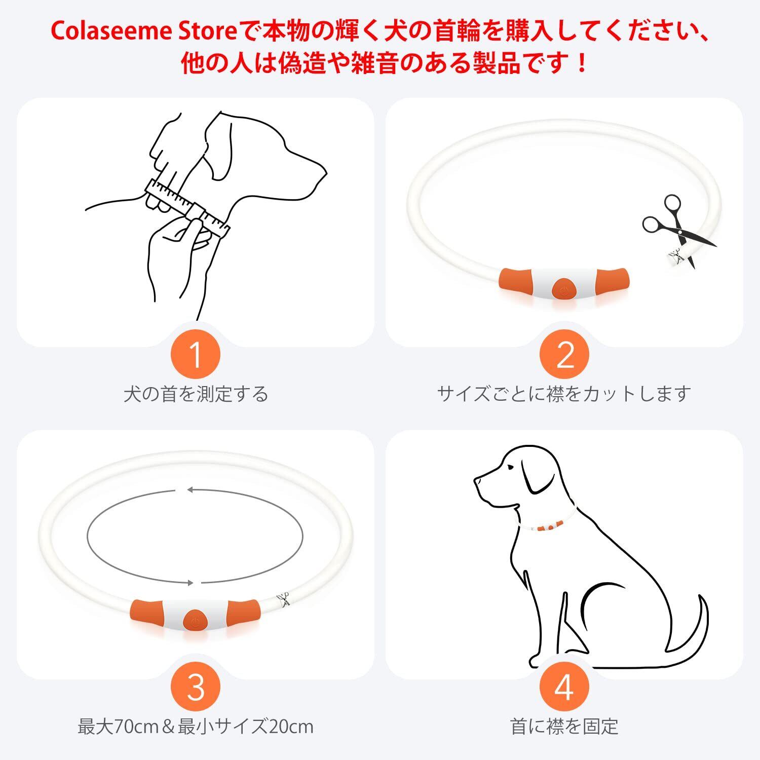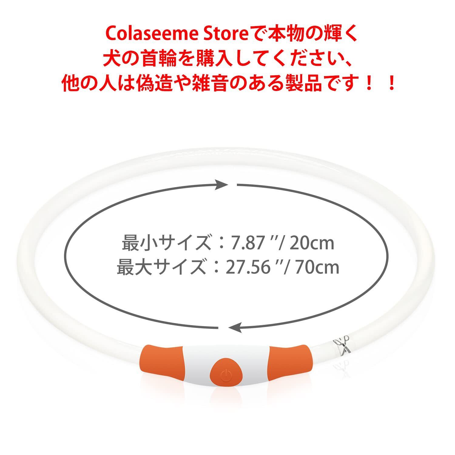 Colaseeme (6593610) 犬光る首輪 視認距離500mで夜間も安心 犬 猫 光る 首輪 ライト 夜 散歩USB 充電式 (オレンジ,70cm)