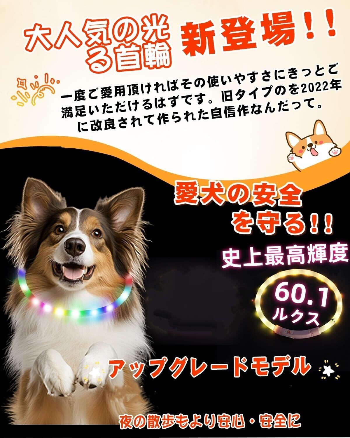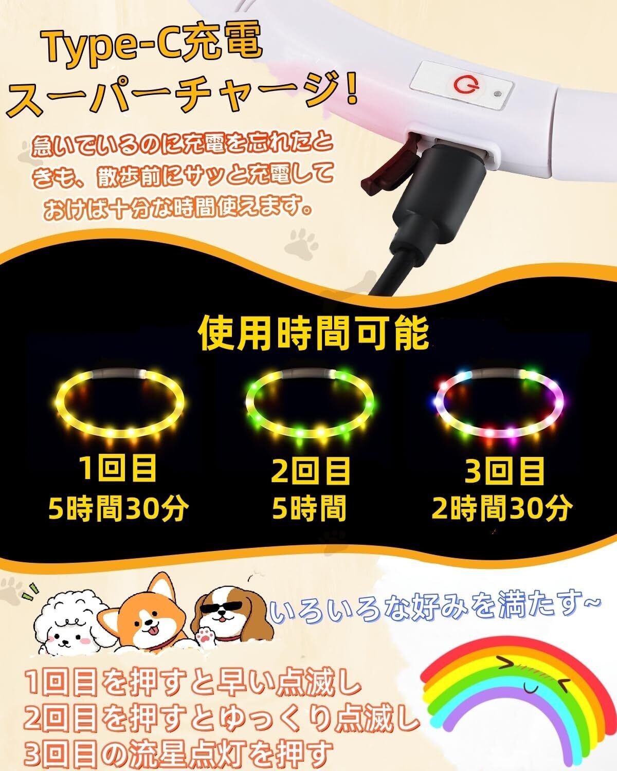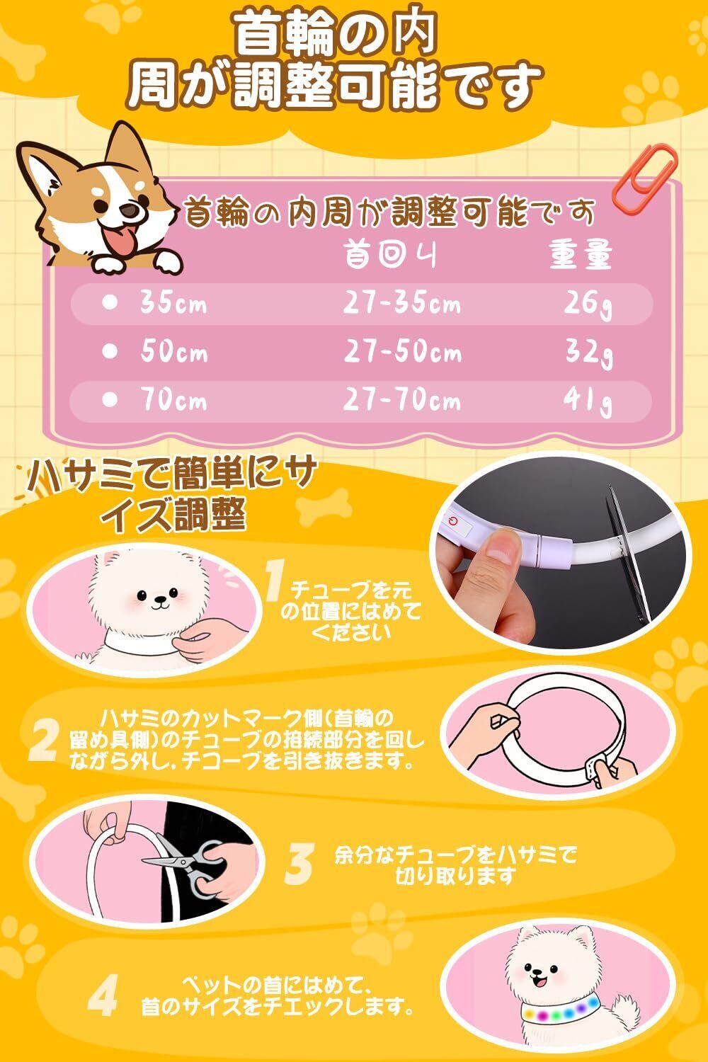 光る首輪 犬 【5分の充電で90分使える】犬 散歩 ライト 小型犬 ペット用品 サイズトリミング可能 超軽量 簡単着脱 おしゃれ 安全(35cm)