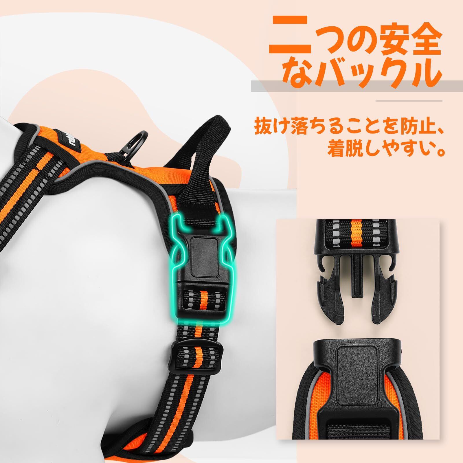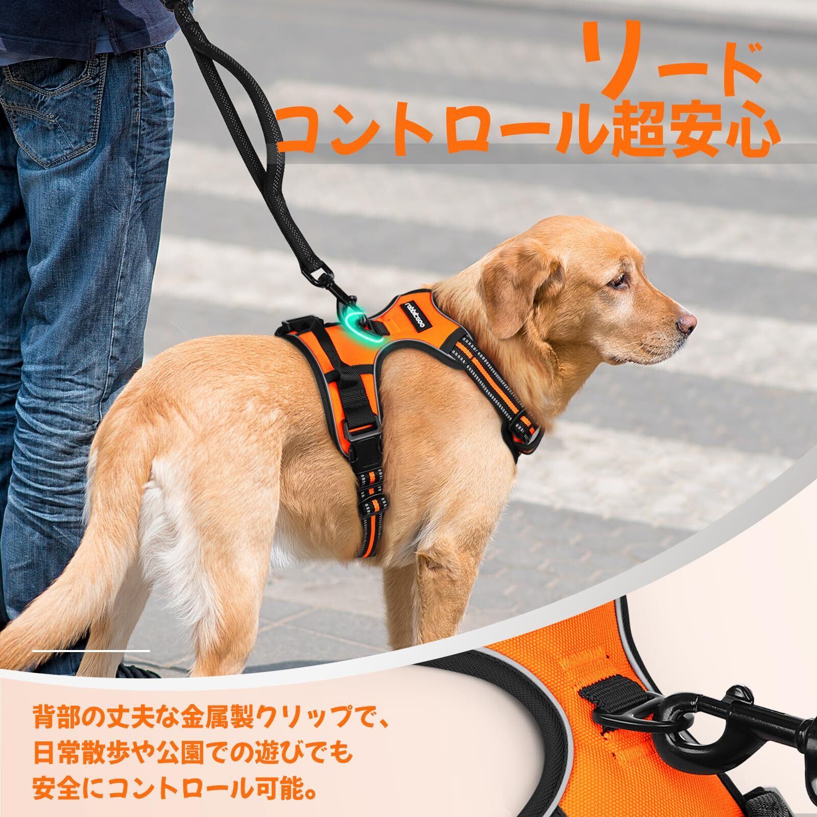 Rabbitgoo 犬 ハーネス 中型犬 首輪 13-20KG 引っ張り防止 サイズ調整可能 夜間反射材 抜けない 通気性 咳き込み防止 歩行補助ハーネス 老犬 介護用品 散歩 しつけ用 ソフト 小型犬 大型犬 柴犬 (オレンジ M)