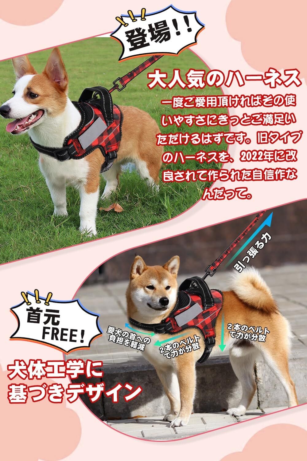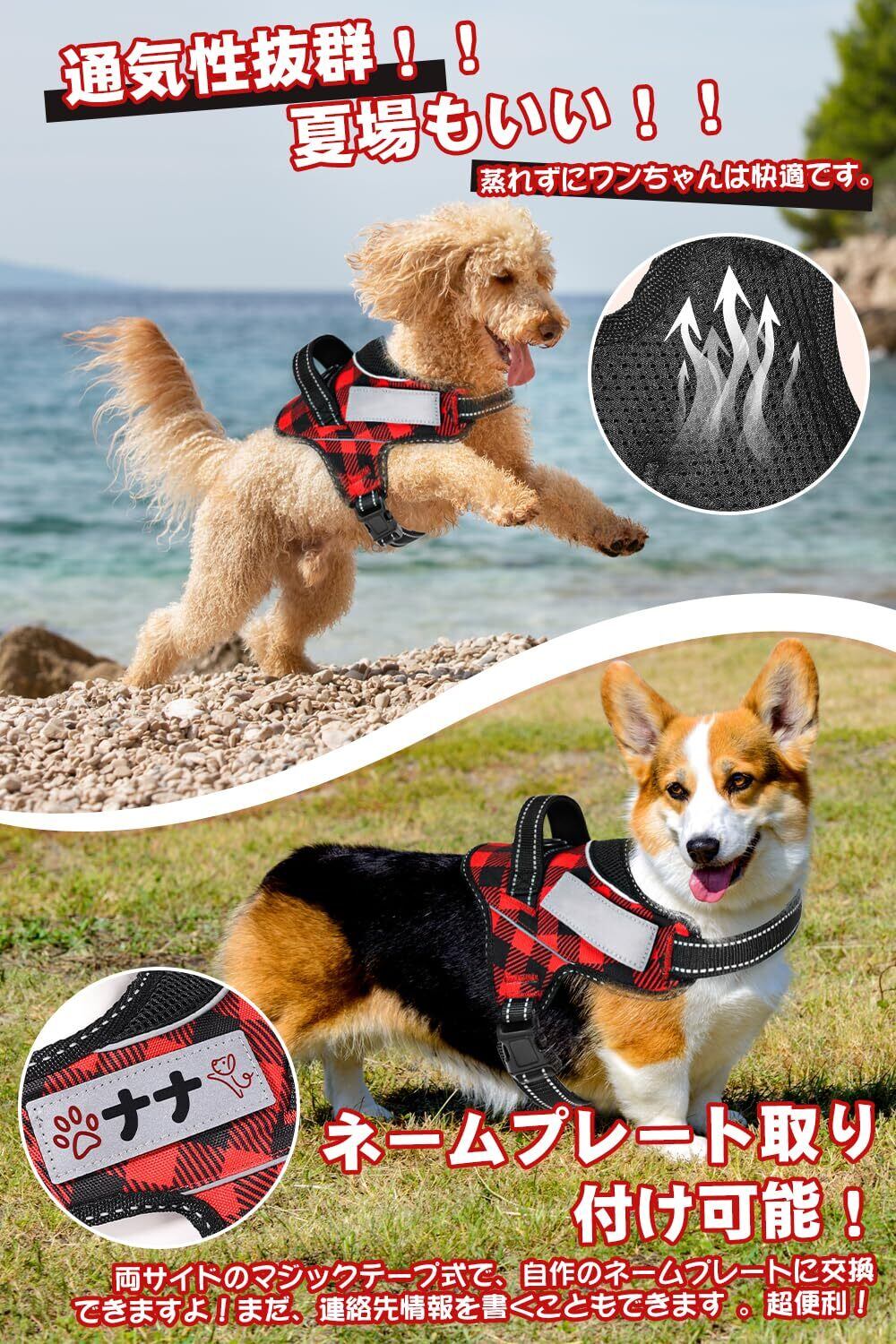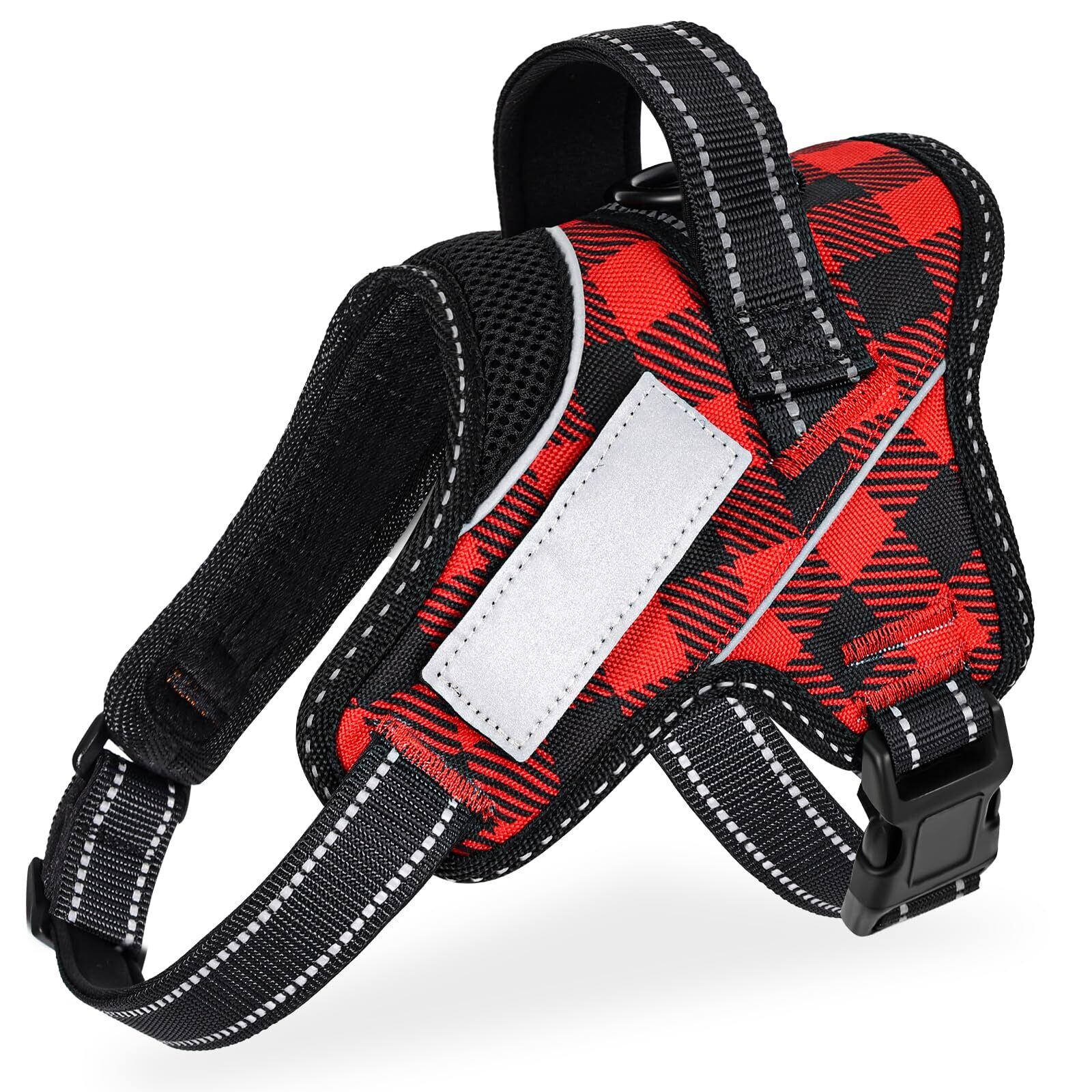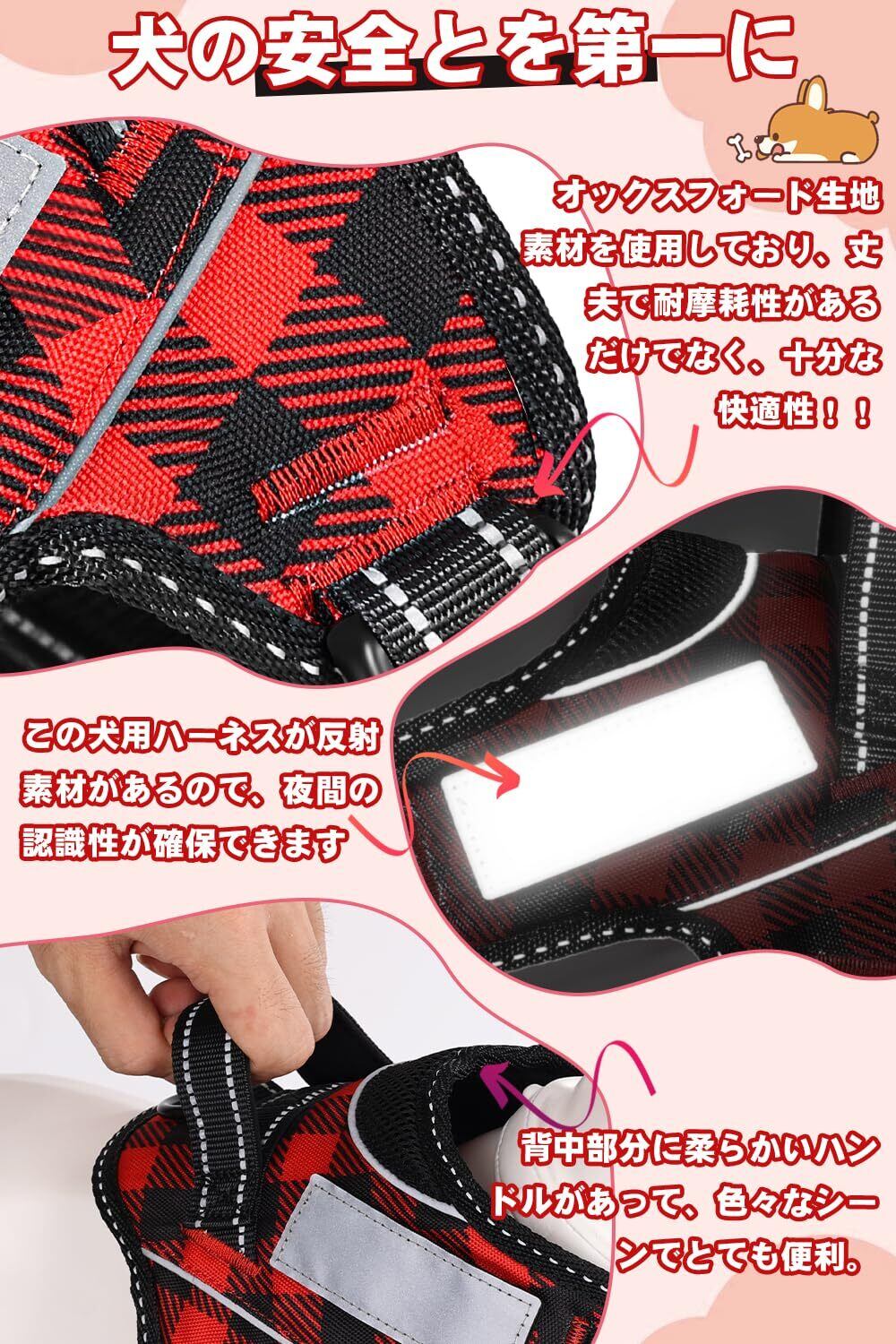 【ドッグトレーナー推薦】OGURIYA犬 ハーネス 喉に優しい 小型犬 中型犬 大型犬 着脱簡単 超可愛い色 ネームプレート 夜間反射 サイズ調整可能 犬体工学に基づいた 7色選択(赤黒チェック柄,S)