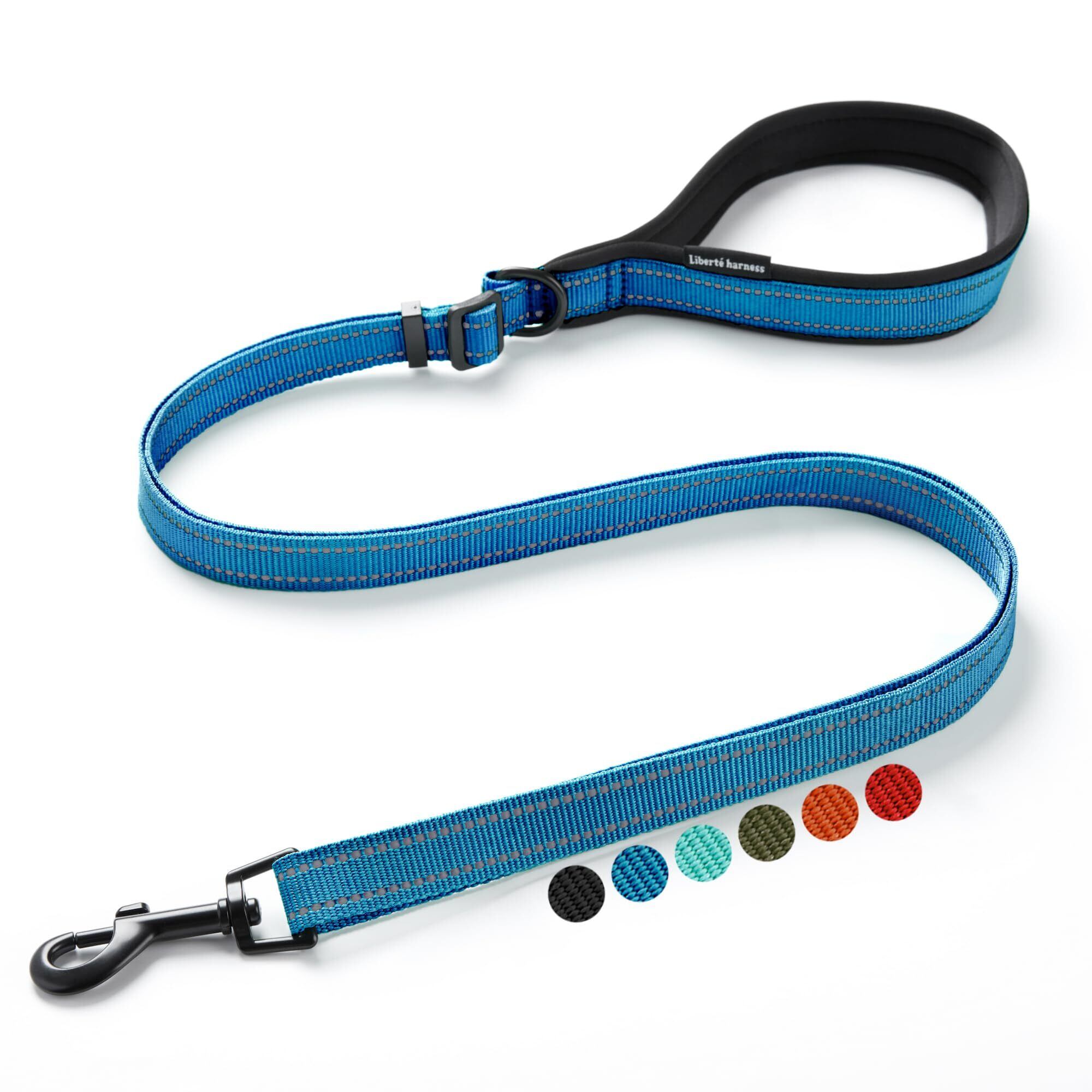 Liberte harness 犬用リード 1本で110〜180cmまで長さ調節 小型 中型 大型犬対応 40kgまで 2cm幅 反射材採用 クッション付きハンドル 小物取り付け可能 (セルリアンブルー)