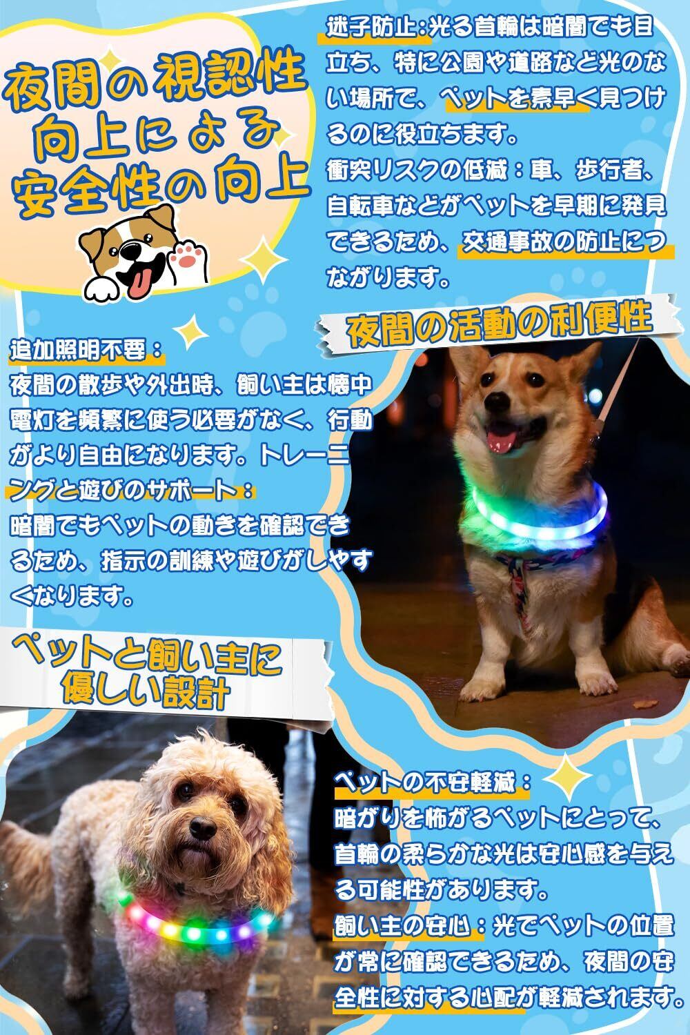 BaoCheng 光る首輪【3分の充電で100分使える】犬 散歩 ライト 小型犬 中型犬 大型犬 3サイズ ペット用品 サイズトリミング可能(35cm)