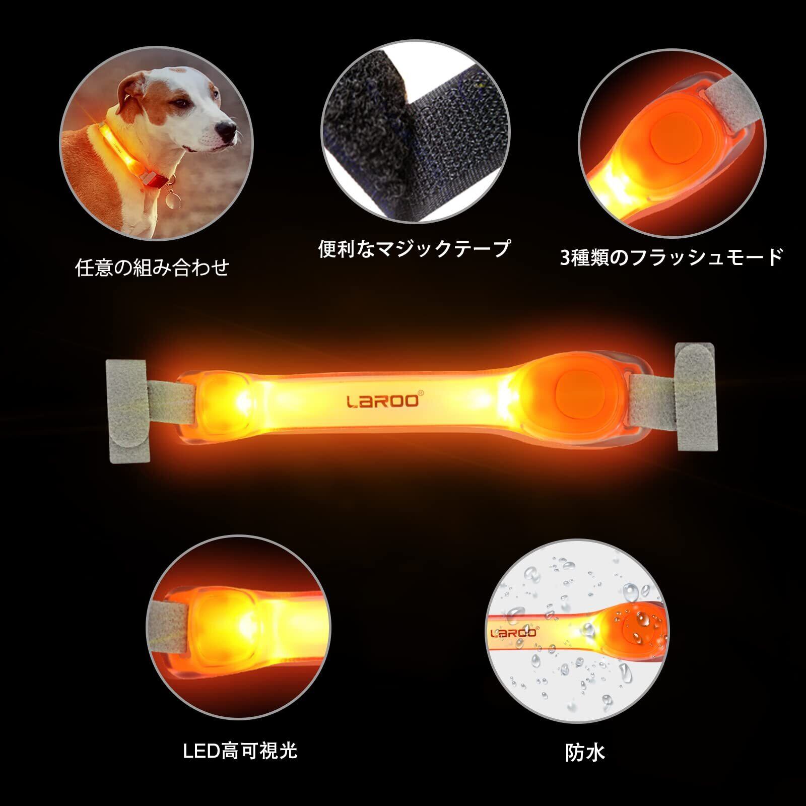 LaRoo ペンダントライト 安全補助グッズ【シリコン素材/軽い/生活防水設計/3種類の光るモード/電池交換可能/夜間散歩用】 (ライトバンド-オレンジ)