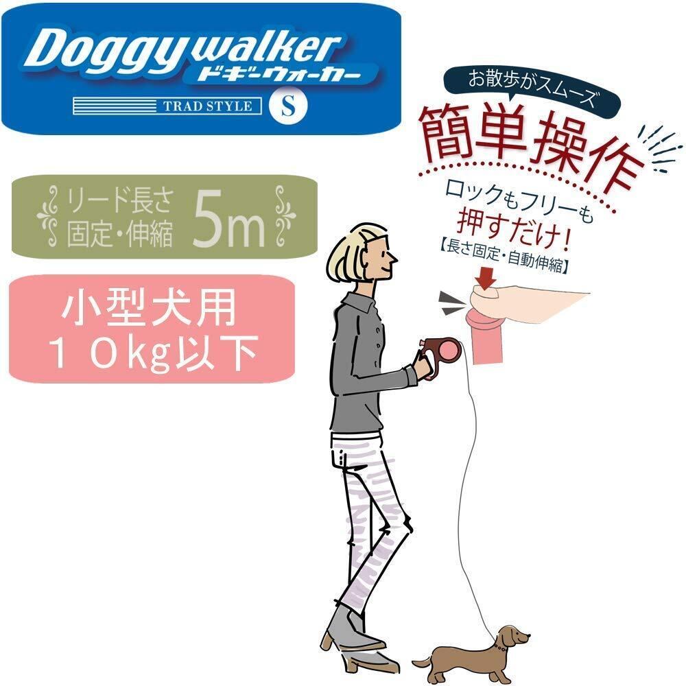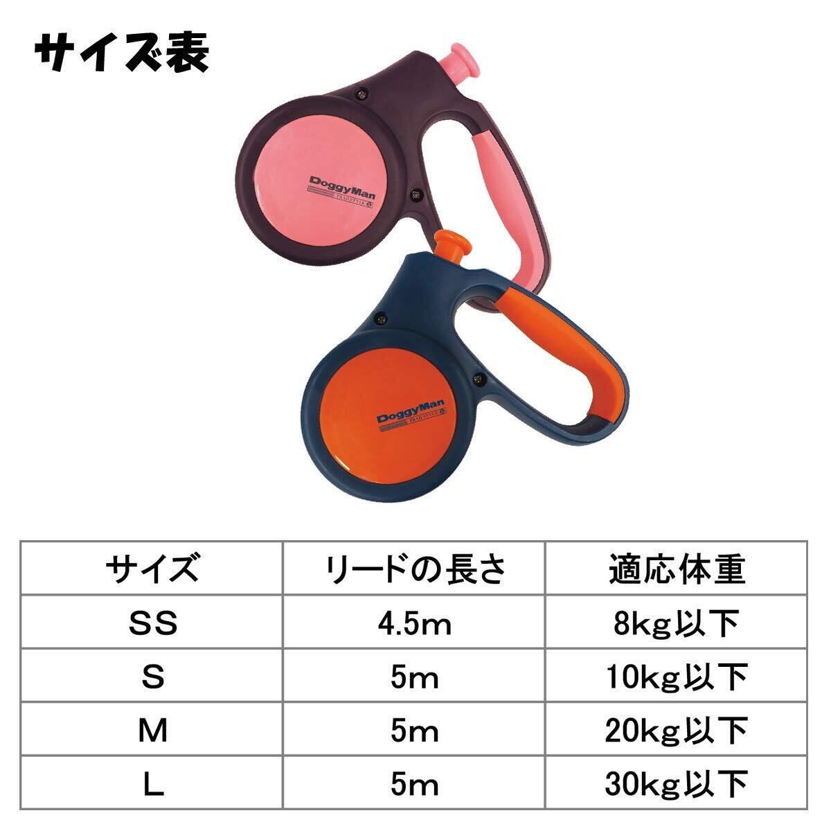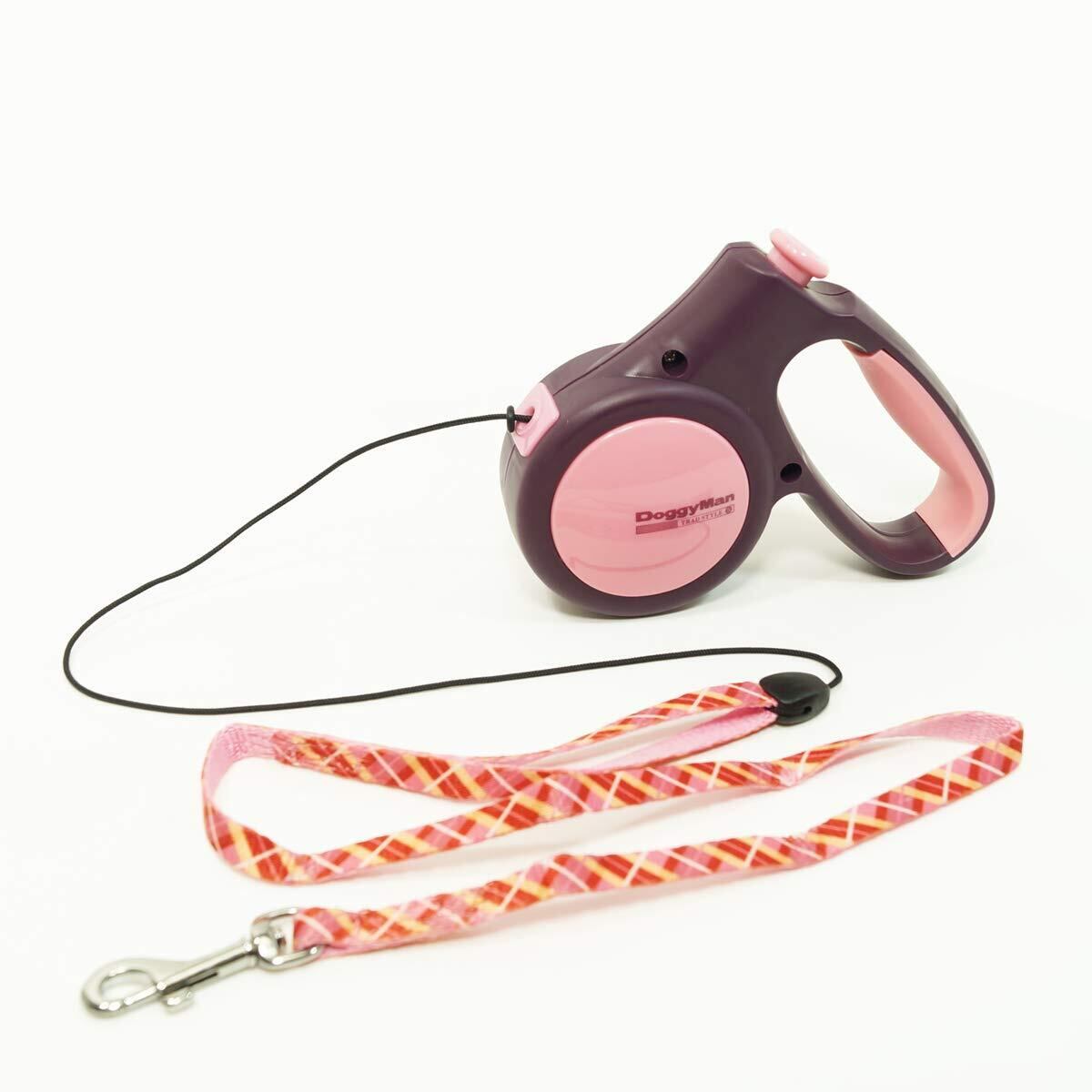 ・体重10kg以下の小型犬用・。丸ヒモ5mの伸縮リール式散歩用リード。・操作はボタン1つで、簡単!押してロック!押してフリーで使いやすい!・握りやすくすべりにくいハンドル部ラバーカバー。