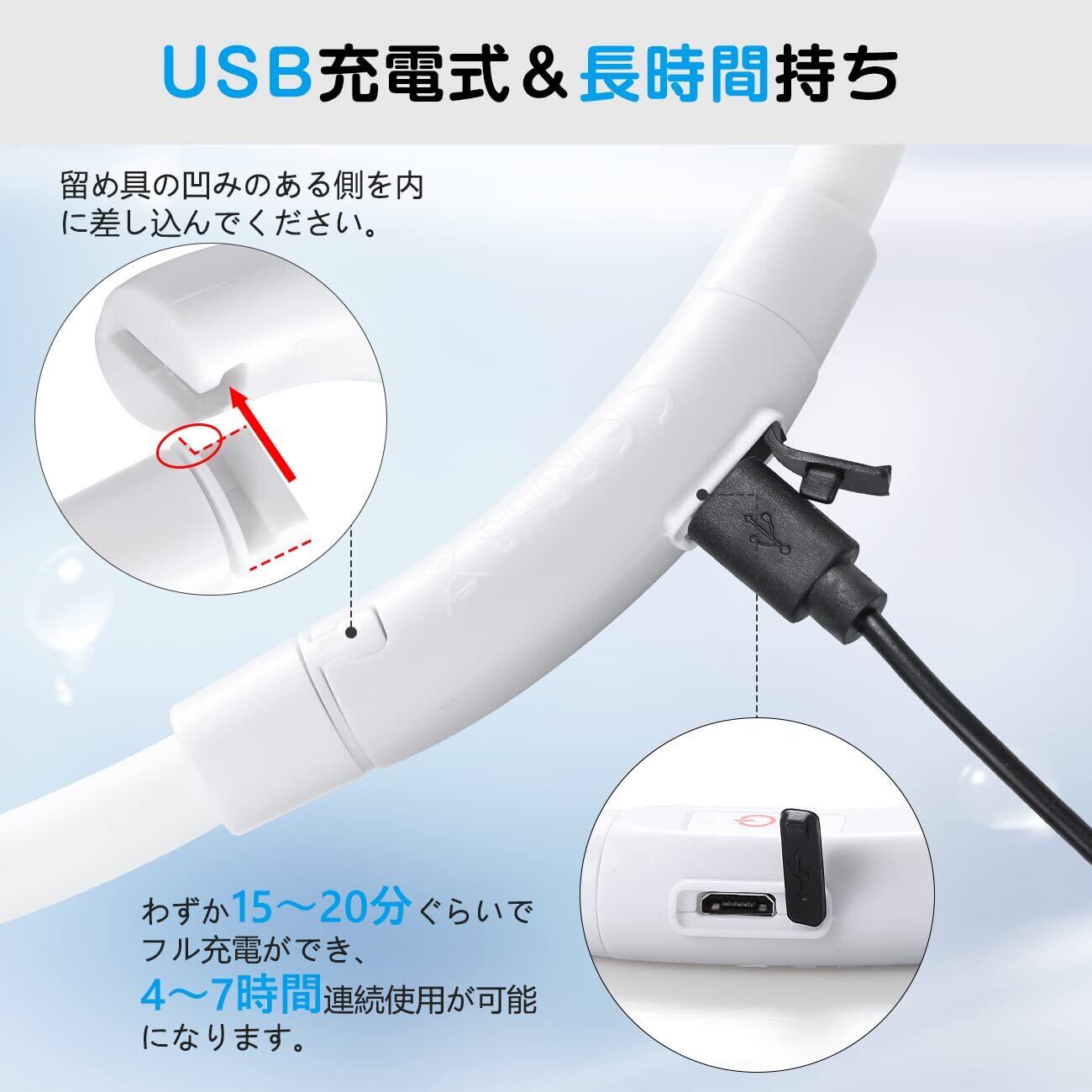 【USB充電式&長時間持ち】充電式なので、繰り返し使えます。わずか15~20分ほどでフル充電することができ、7時間ぐらい連続使用ができます。市販のLED首輪に比べると、充電時間が短く、使用時間がずっと長く改良されました。(使用時間:点灯~約4.5時間 速い点滅~約7時間 遅い点滅~約7時間 フラッシュ~約7時間)