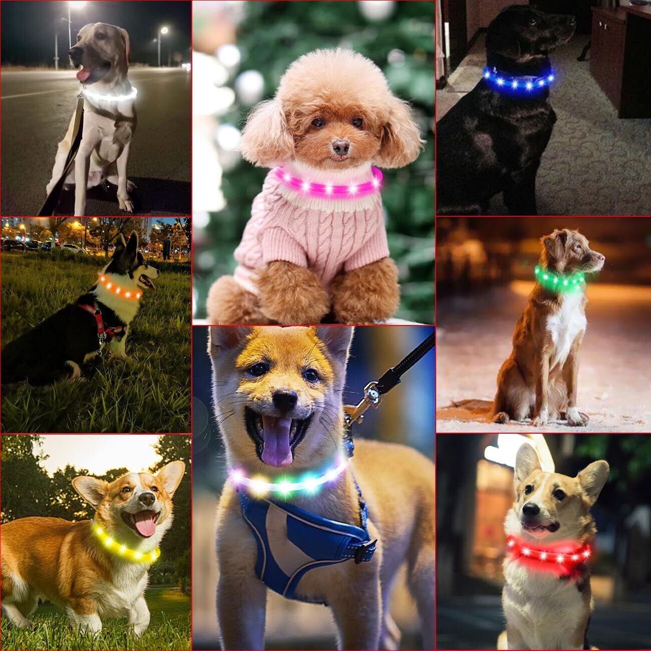 光る首輪 犬 USB充電式 4つ発光モード 20分充電で最長7時間使用可能 70cm サイズ調節可能 LED 軽量 ペットのお散歩安全対策 事故防止 視認距離500m 小/中/大型犬適応 (虹色)