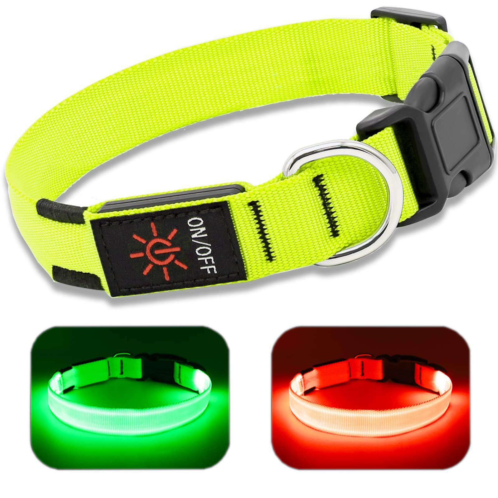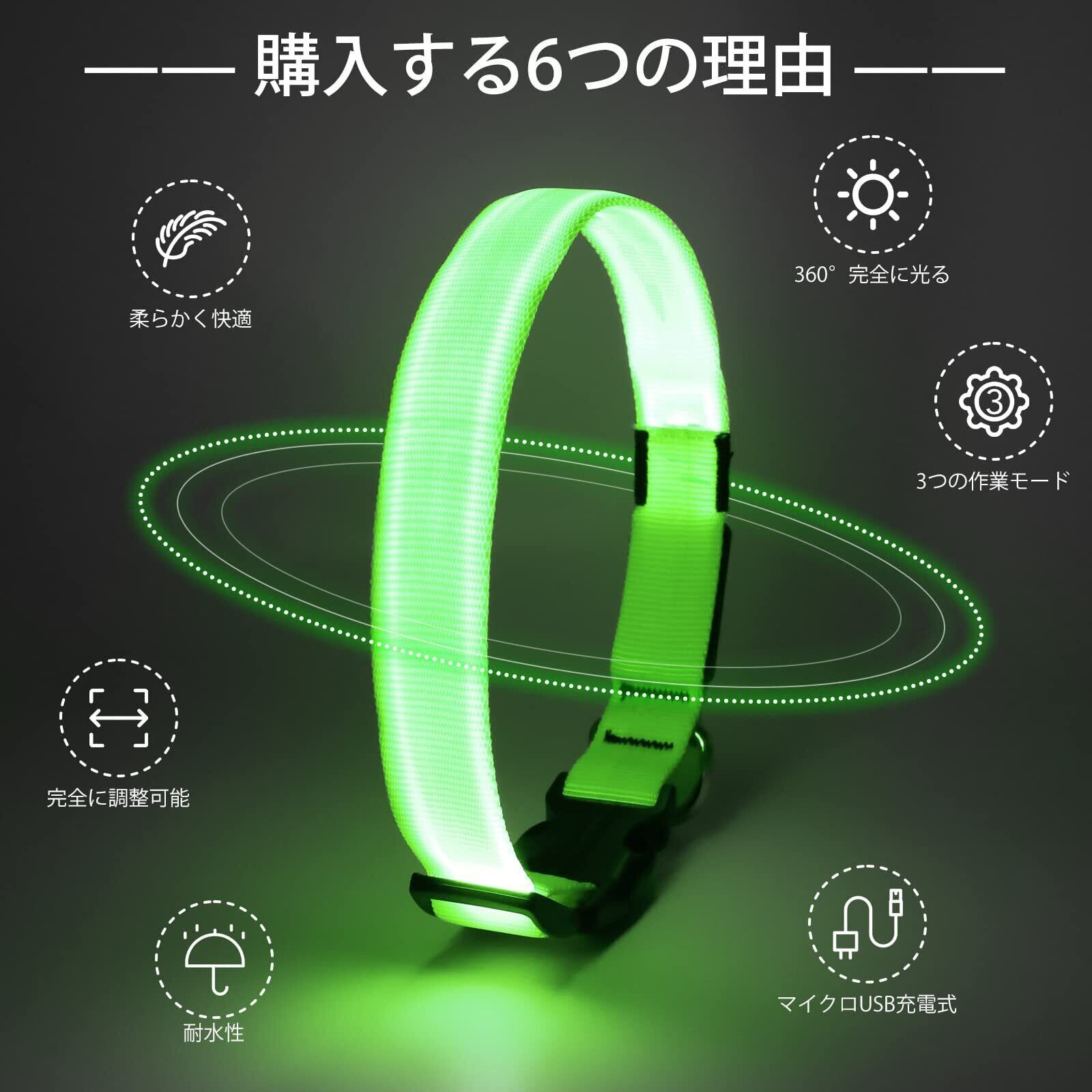 【本物のKOSKILL社】 LED光る首輪 犬用 散歩 夜 ライト USB充電式 小型犬 中型犬 大型犬 安全性 サイズ調整可能 視認距離500mで夜間も安心(グリーン, M)