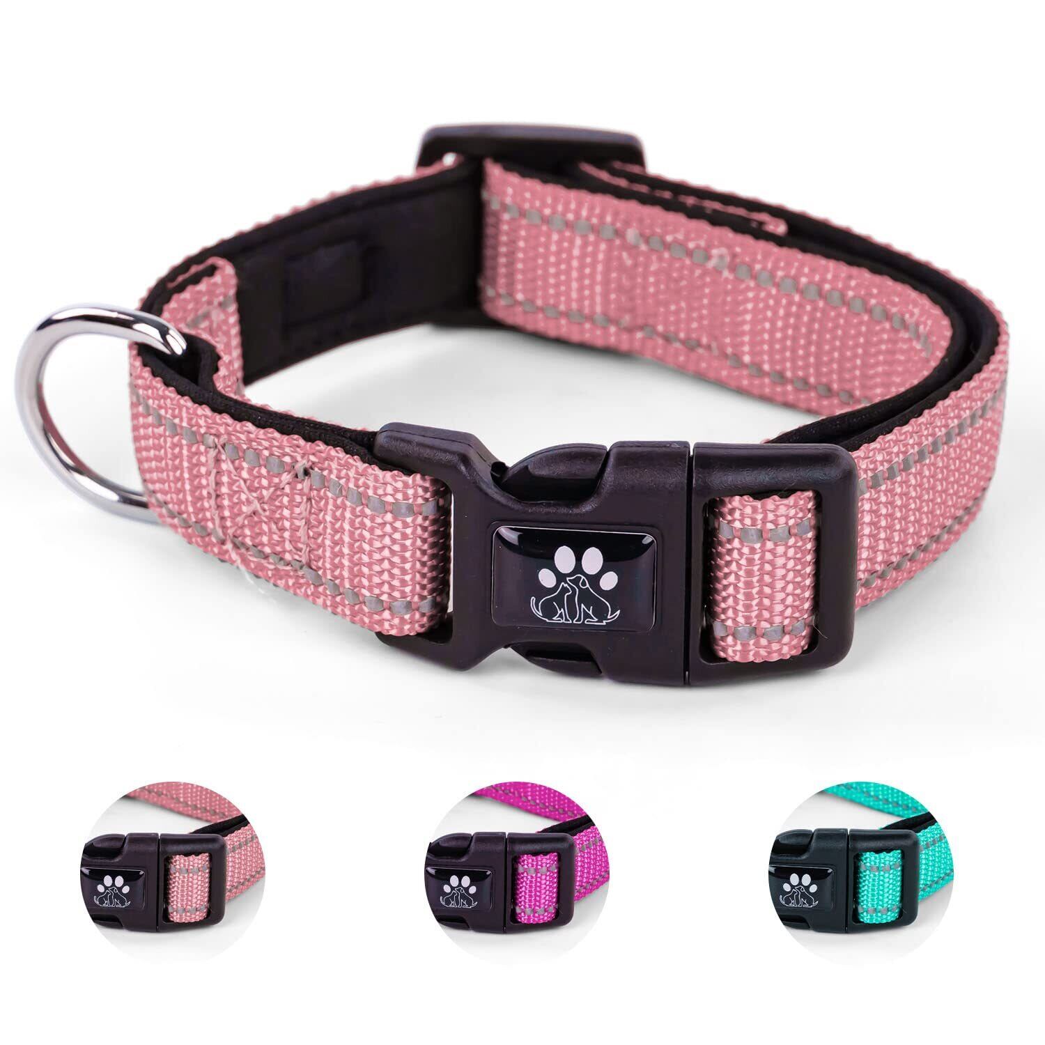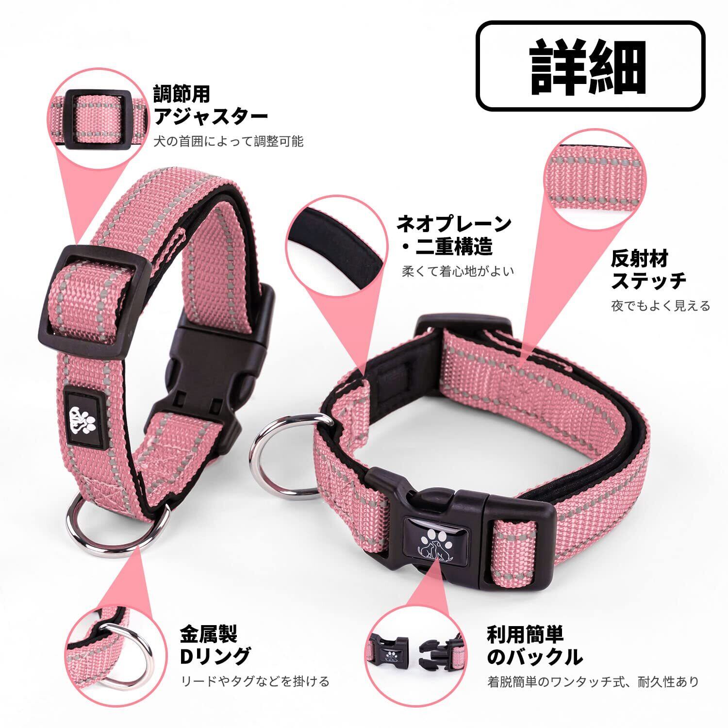 NESTROAD 犬首輪 調節可能 夜間反射 小型犬・中型犬・大型犬用 全犬種対応 おしゃれ メッシュ 通気性 安全 訓練用 メッシュ ソフト 痛くない 簡単装着 丈夫 (ピンク,S)