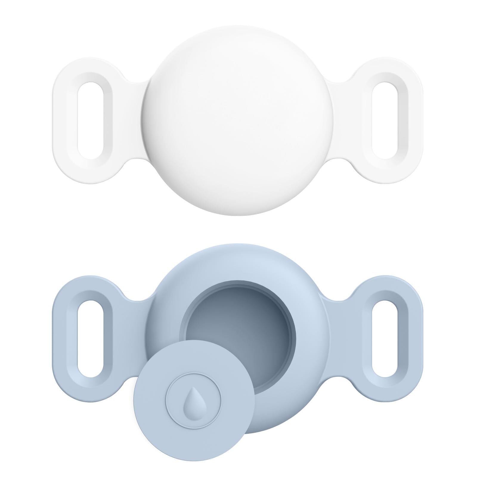YGTBSR 2セット Airtag ケース Airtag ホルダー ペット 犬 猫用 防水 傷つきにくい 軽量 紛失防止シリコン エアタグホルダーケースと互換性あり ペット 猫 犬 リードバッグ バックパック 財布 鍵 荷物 (ブルーグレー+ホワイト, S)