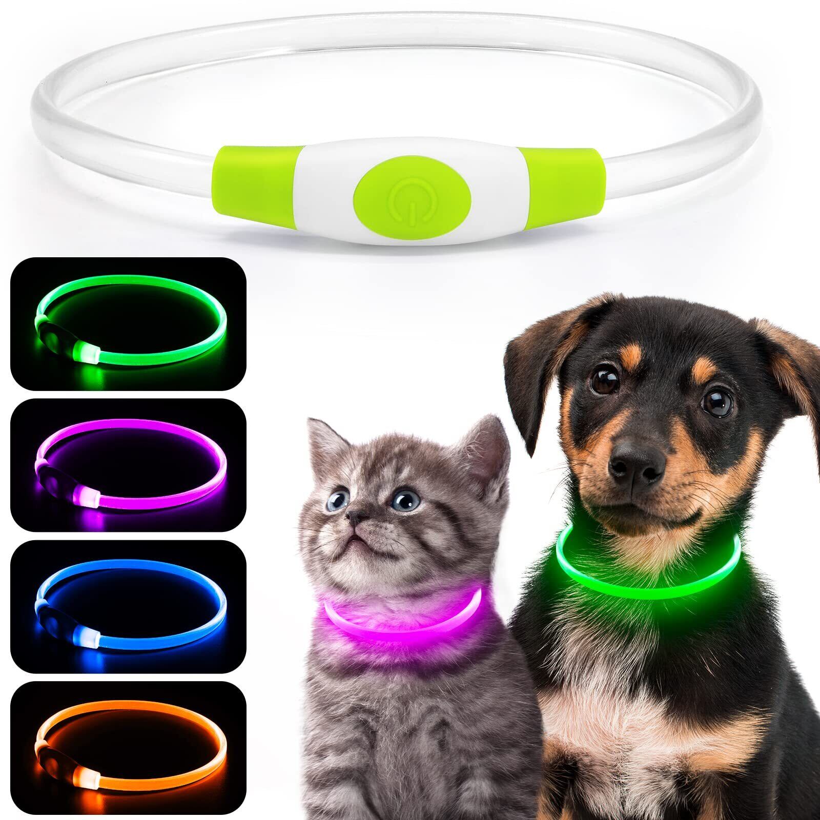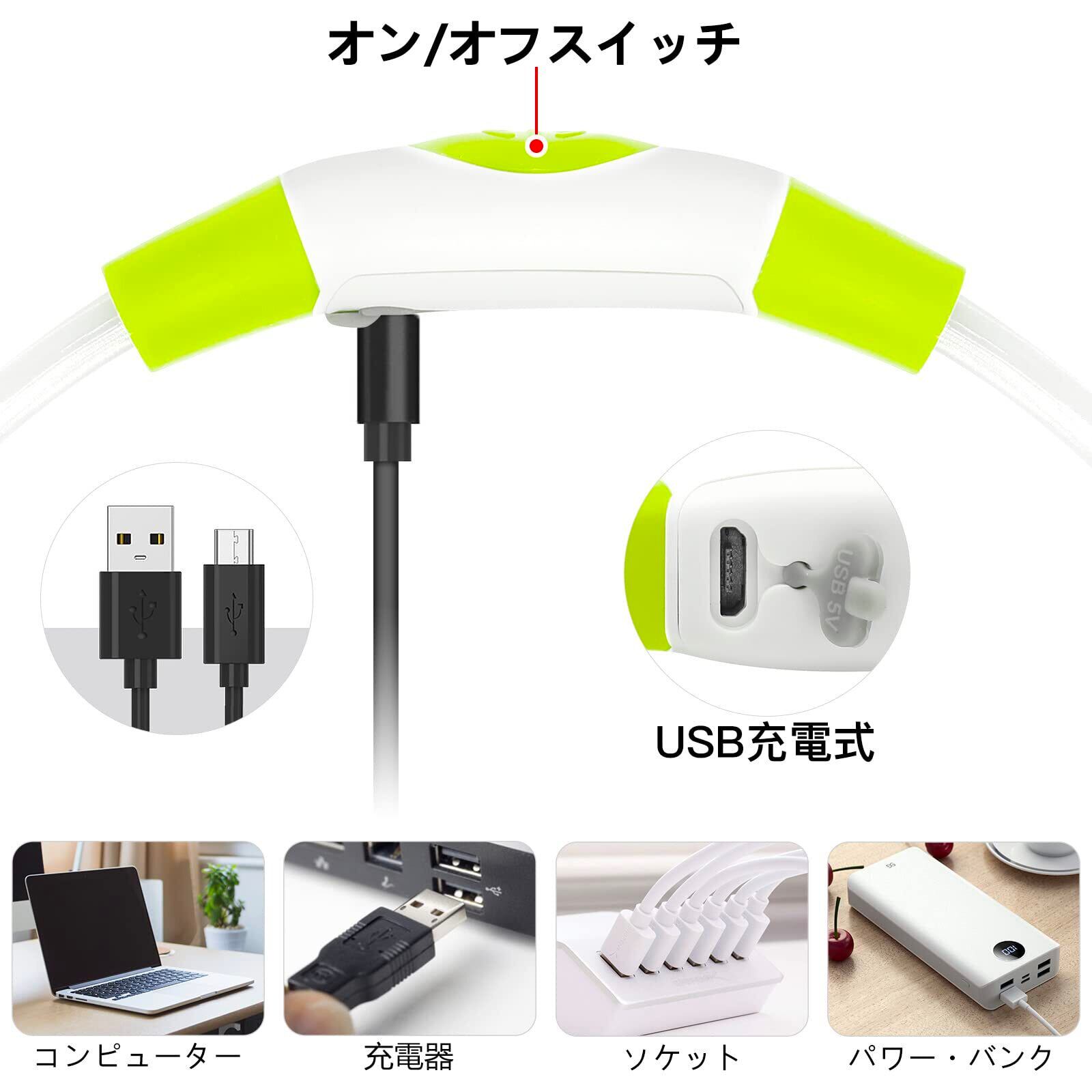 iTayga 犬 猫用LED光る首輪, 散歩 ライト 小型犬 犬用ライト充電式, お散歩ライト, 装着簡単 柔らかい 軽量 サイズ調整可能 [視認距離500m] 夜間 安全性 防水(Feichi JP はiTaygaの商品を唯一販売店です)