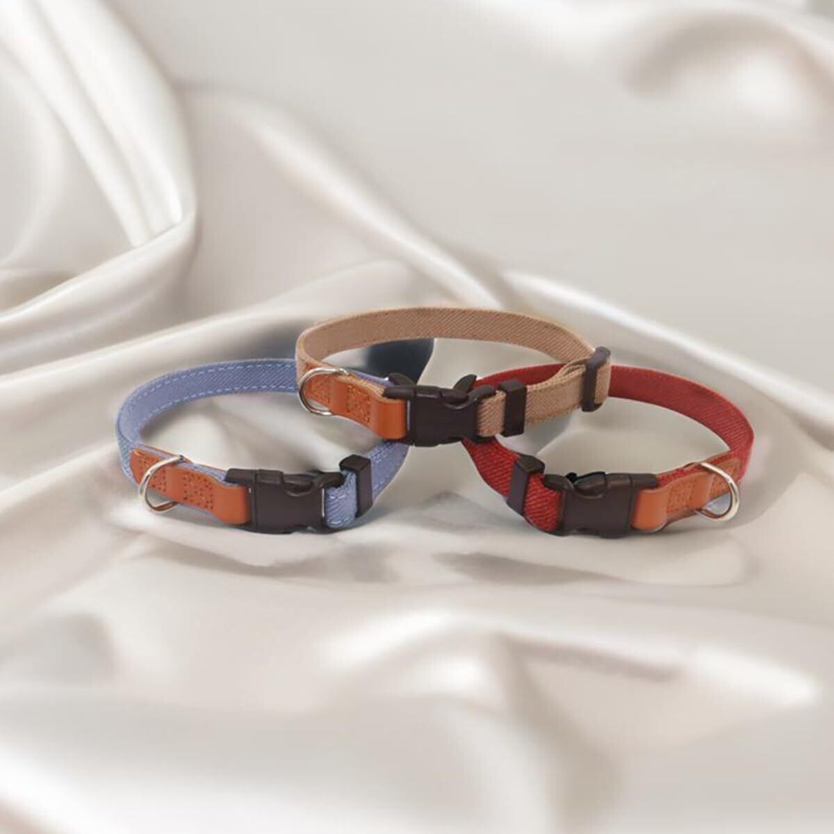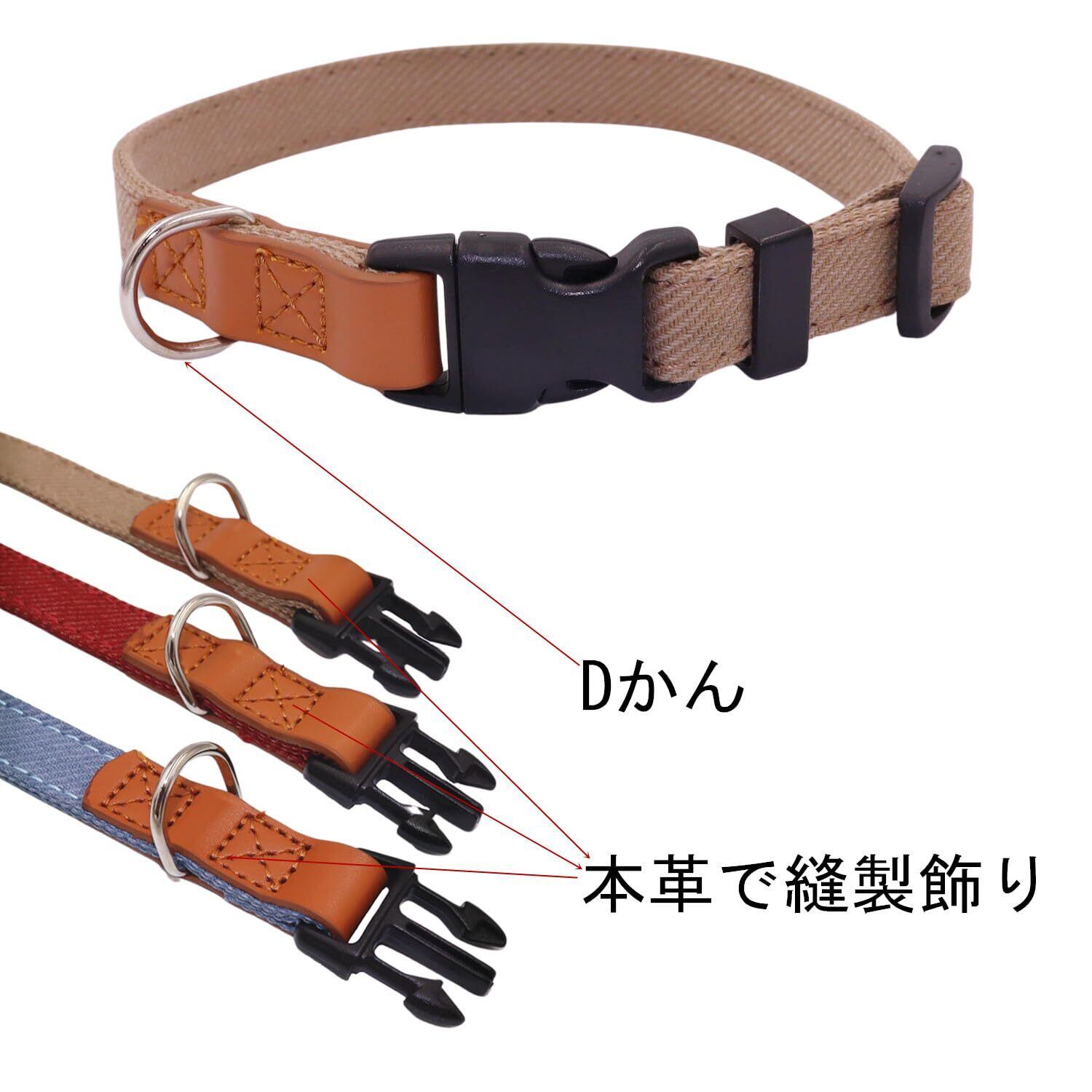 *柔らかく耐久性がいいデニム製の首輪です。ワンちゃんには首に優しいです。色は赤、ブルー、カーキ3色がありますから、好きな色を選ぶことができます。