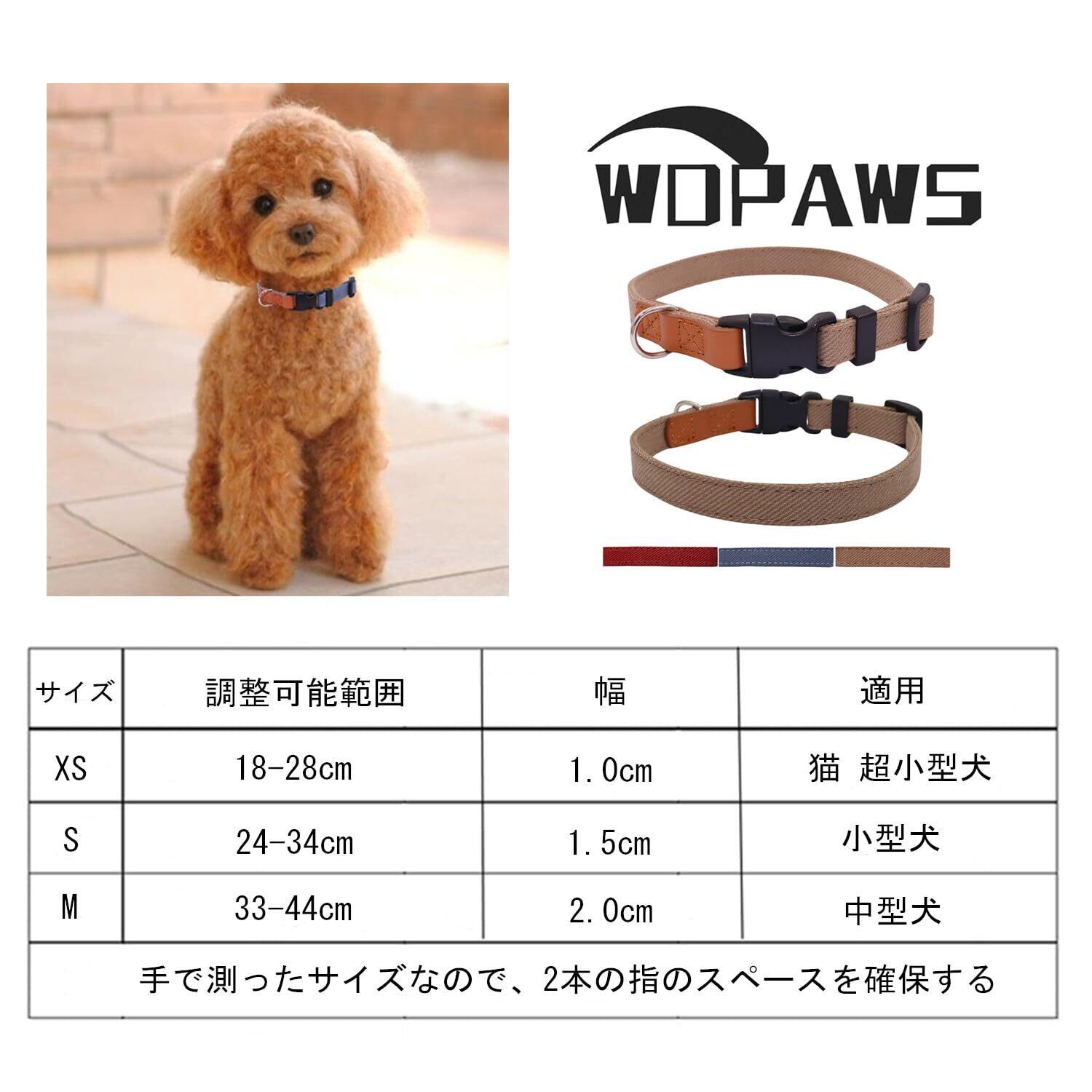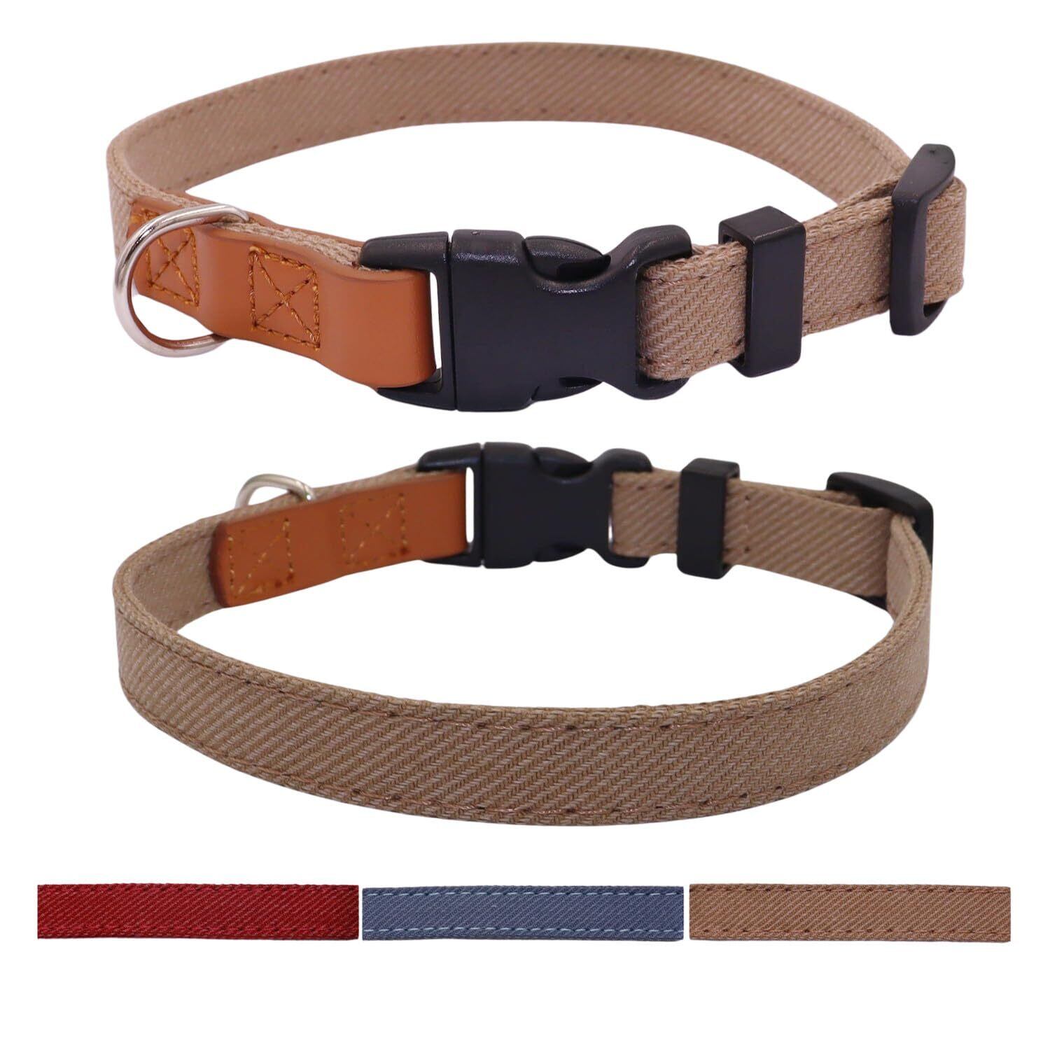 WDPAWS ペット首輪 小型犬 首輪 犬 犬の首輪 調節可能 犬用首輪 超軽量 デニム製 (カーキ, S)