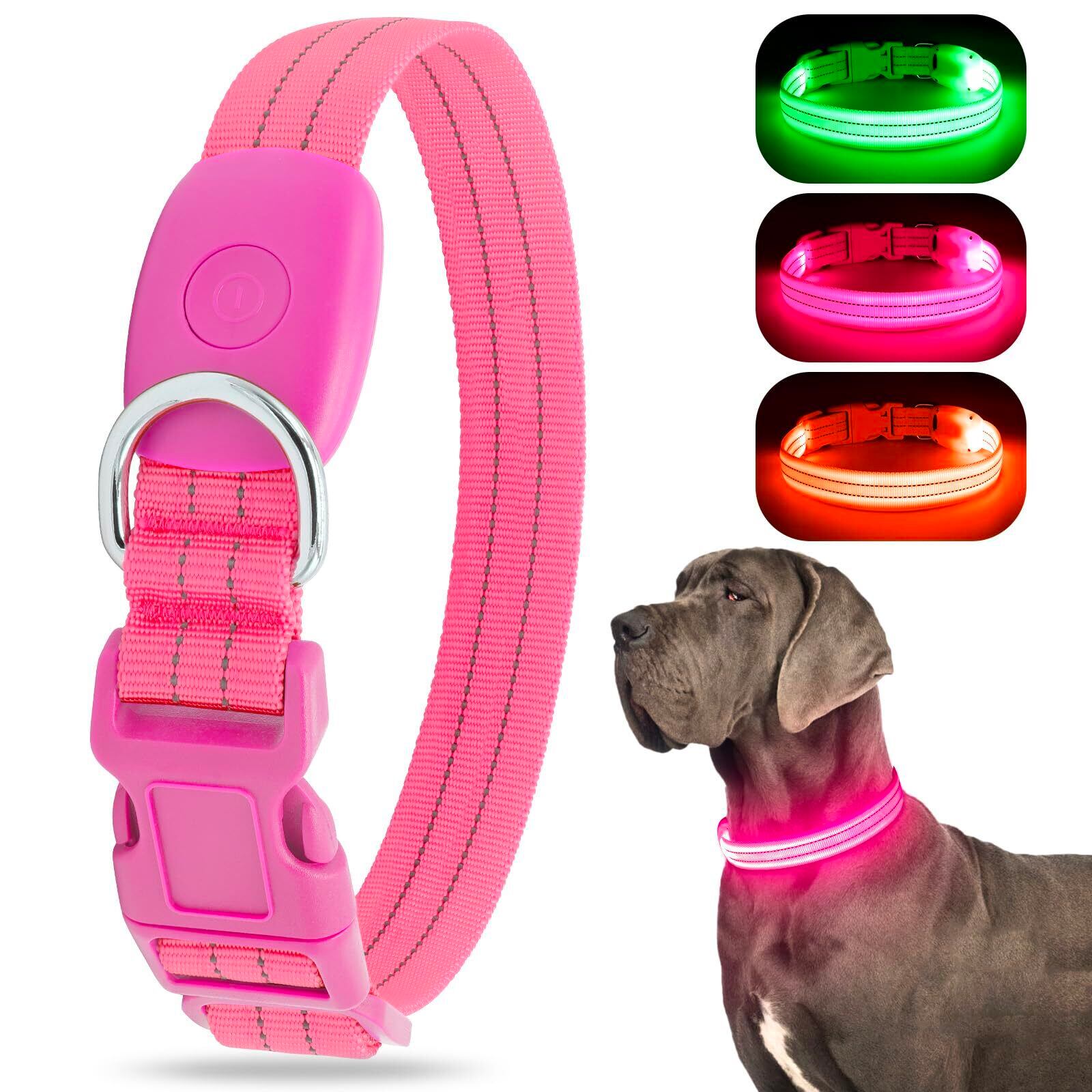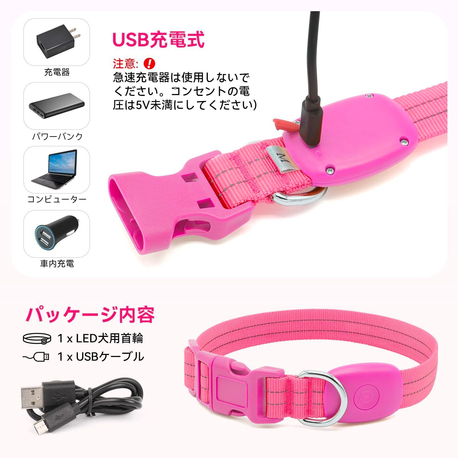 LED 光る首輪 犬 散歩 ライト 夜 ライト 超高輝度 USB充電式 暗闇で光る安全首輪 サイズ調節可能 視認距離500メートル 防水 超高輝度 犬 首輪 (ピンク, S)