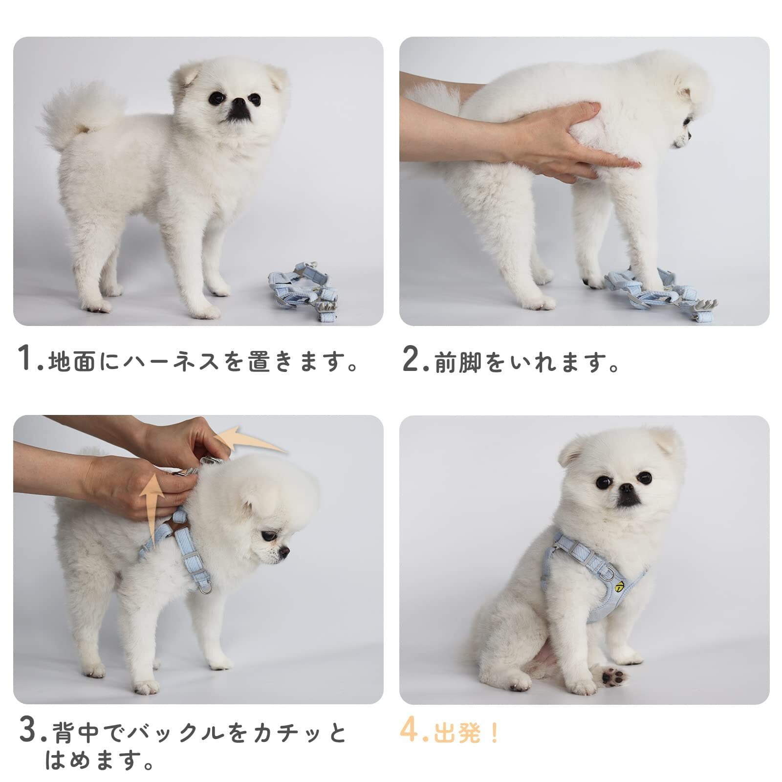③【調整可能】このハーネスはベルトの長さを調整できる、4つのストラップを備えています。子猫子犬の成長に応じてベルトの長さを合わせることができるので、いつでも最適な位置に調整することができます。 お散歩、お出かけなどに大活躍!