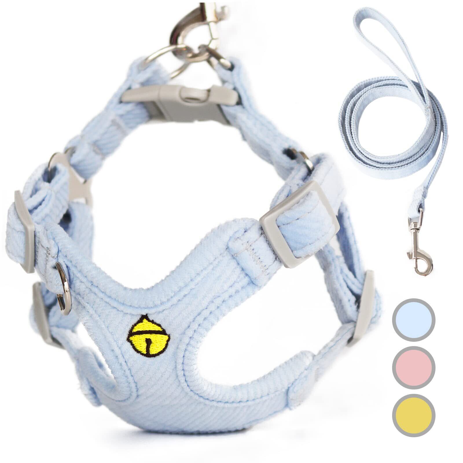 Miru pochi(ミルポッチ) 猫 犬 ハーネス 小型犬 りーど 首輪 ペット 超小型犬 おしゃれ 子犬 小型けん イヌ 胴輪 リード セット ソフト つけやすい 柔らかさ 抜けない 付き 軽量 調整 簡単 散歩 気管に優しい (XXS ライトブルー)