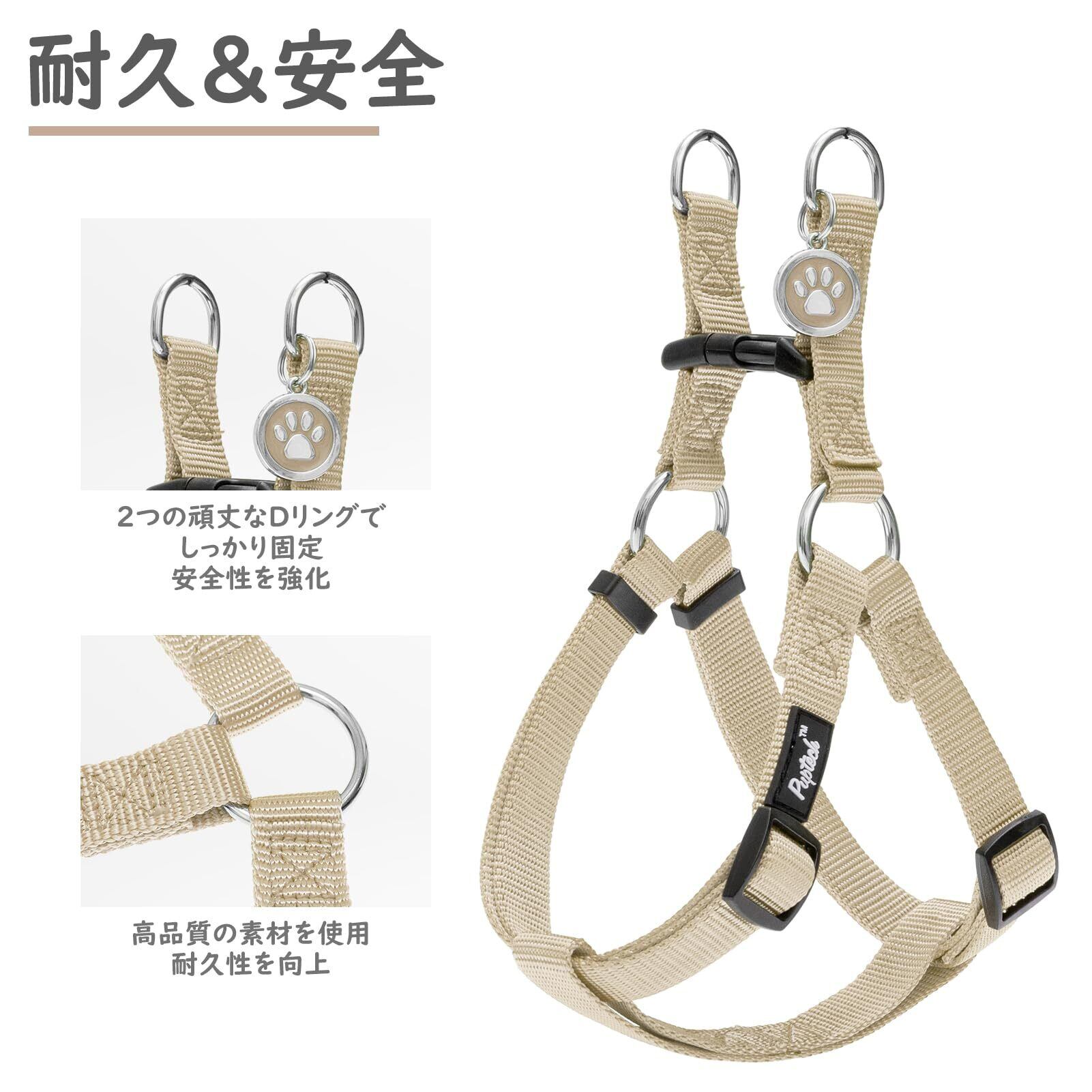 PUPTECK 犬 ハーネス 迷子札 犬 胴輪 犬用ハーネス 喉に優しいハーネス ペット用品 ドッグ はーねす 調節可能 着脱簡単 軽量 通気性 快適 負担が少ない 耐久性 引っ張り防止 安全 夜間反射 IDタグ付き 散歩 アウトドア しつけ 訓練 人気 可愛い おしゃれ 小型犬 中型犬 大型犬(ベージュ、Sサイズ)