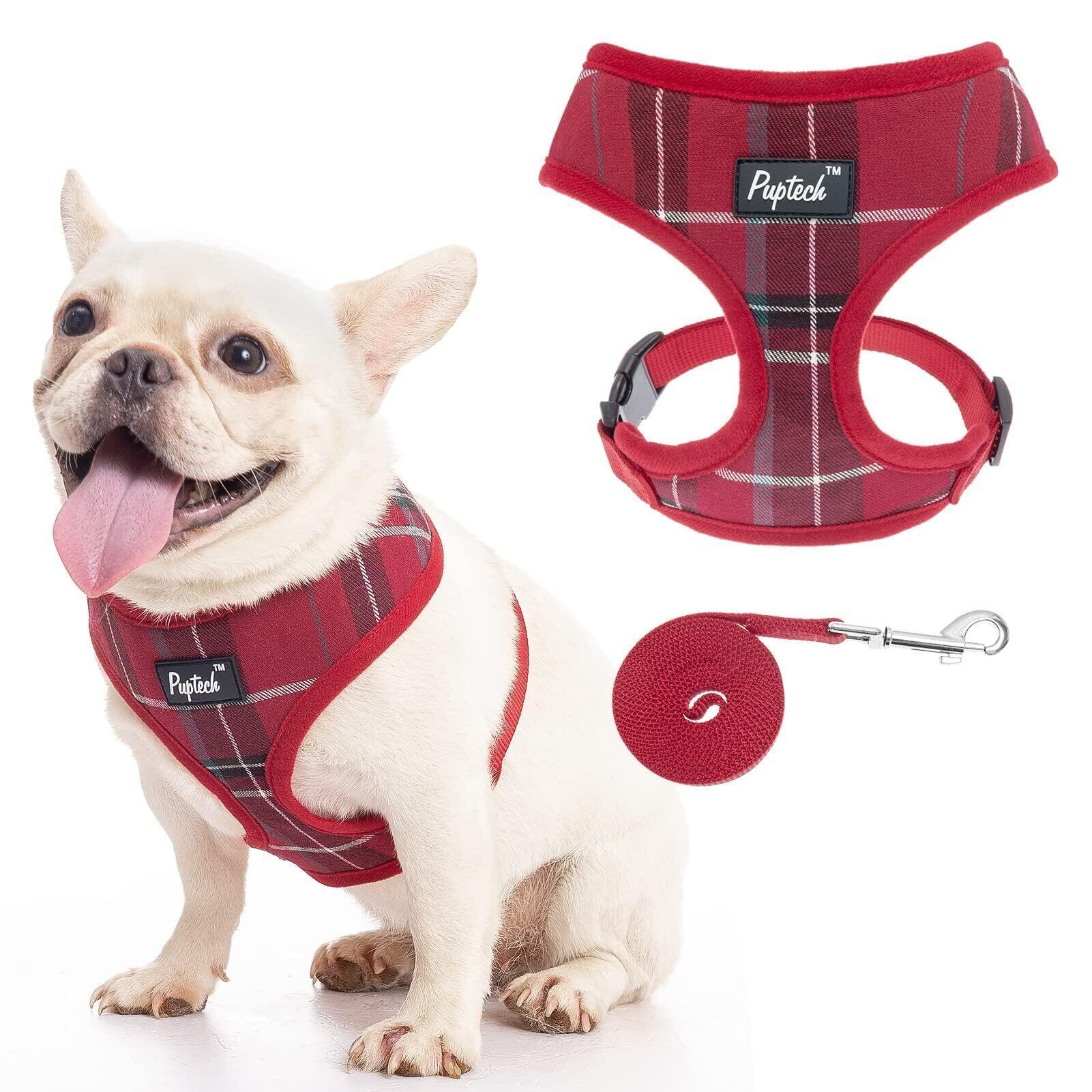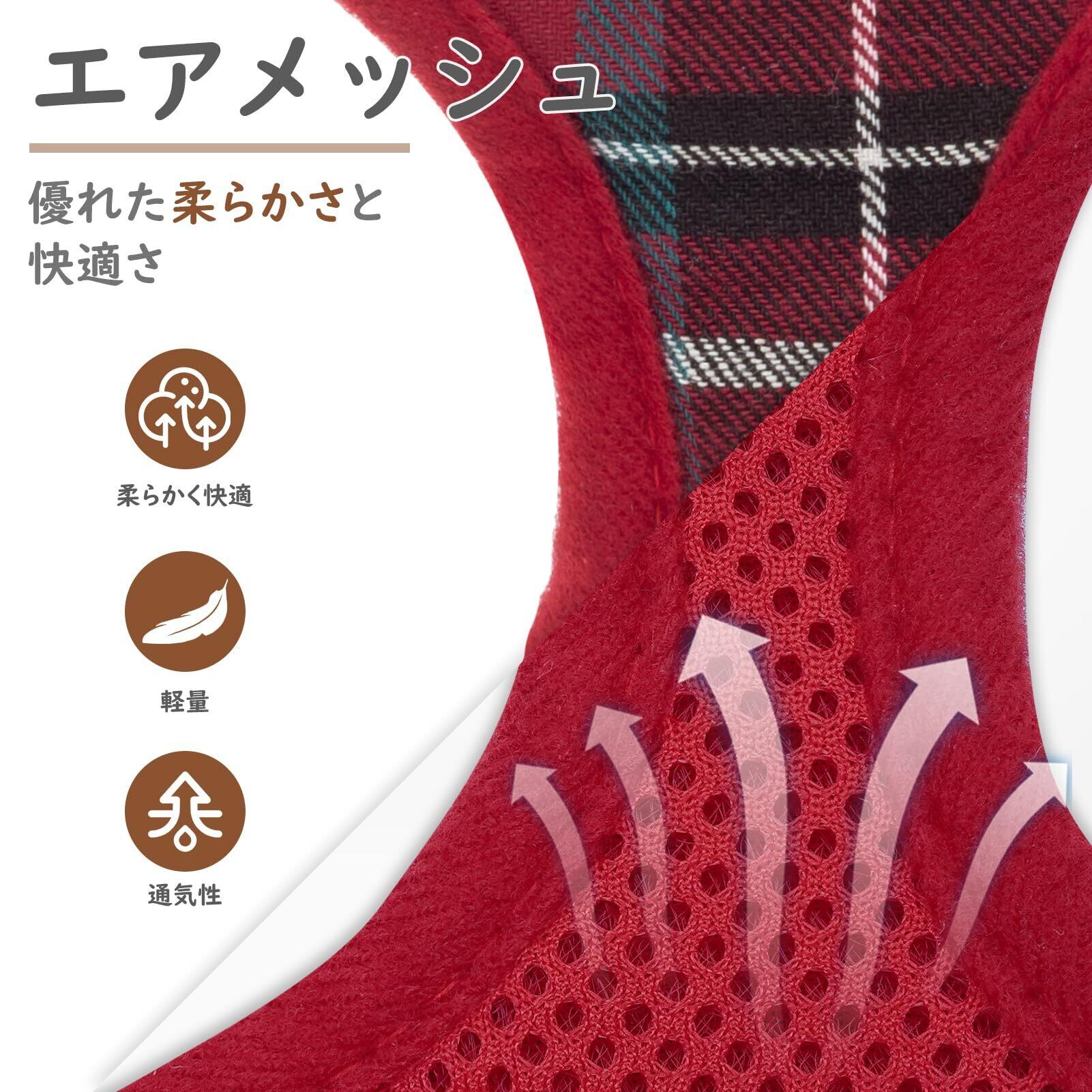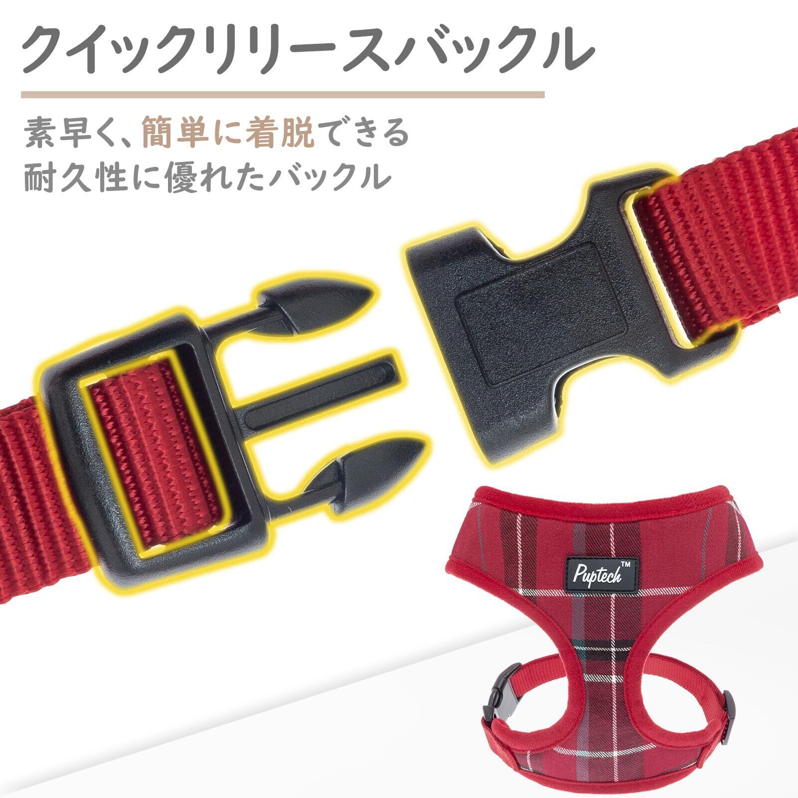 PUPTECK 犬 ハーネス リード セット 犬用 胴輪 はーねす 調節可能 着脱簡単 軽量 メッシュ 通気性 快適 ソフト 反射材付き 引っ張り防止 抜けない 喉に優しい 耐久性 散歩 安全 しつけ用 老犬介護 おしゃれ 小型犬 中型犬 大型犬 (レッド チェック, Sサイズ)