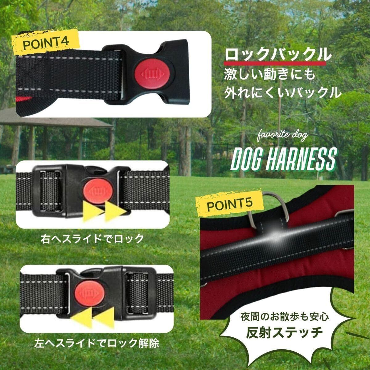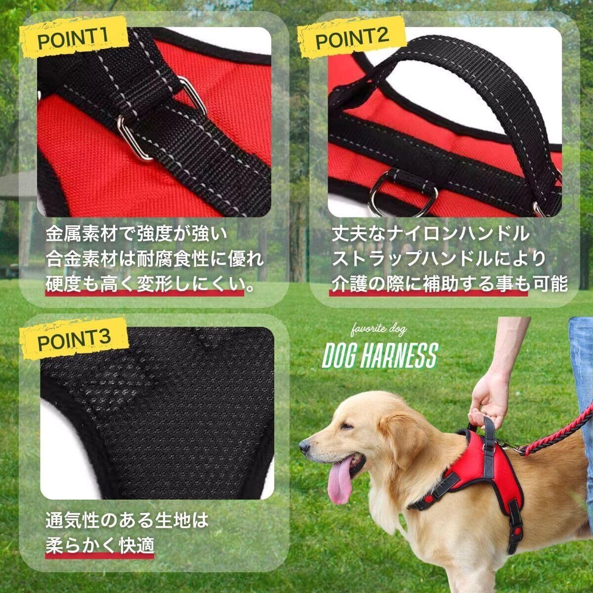 grooblue 犬用ハーネス 小型犬 中型犬 犬用胴輪 首輪 引っ張り防止 サイズ調整可能 夜間反射材 抜けない 通気性 簡単着脱 おしゃれ 安全 しつけ用 訓練 歩行補助 散歩 可愛い レッド Lサイズ