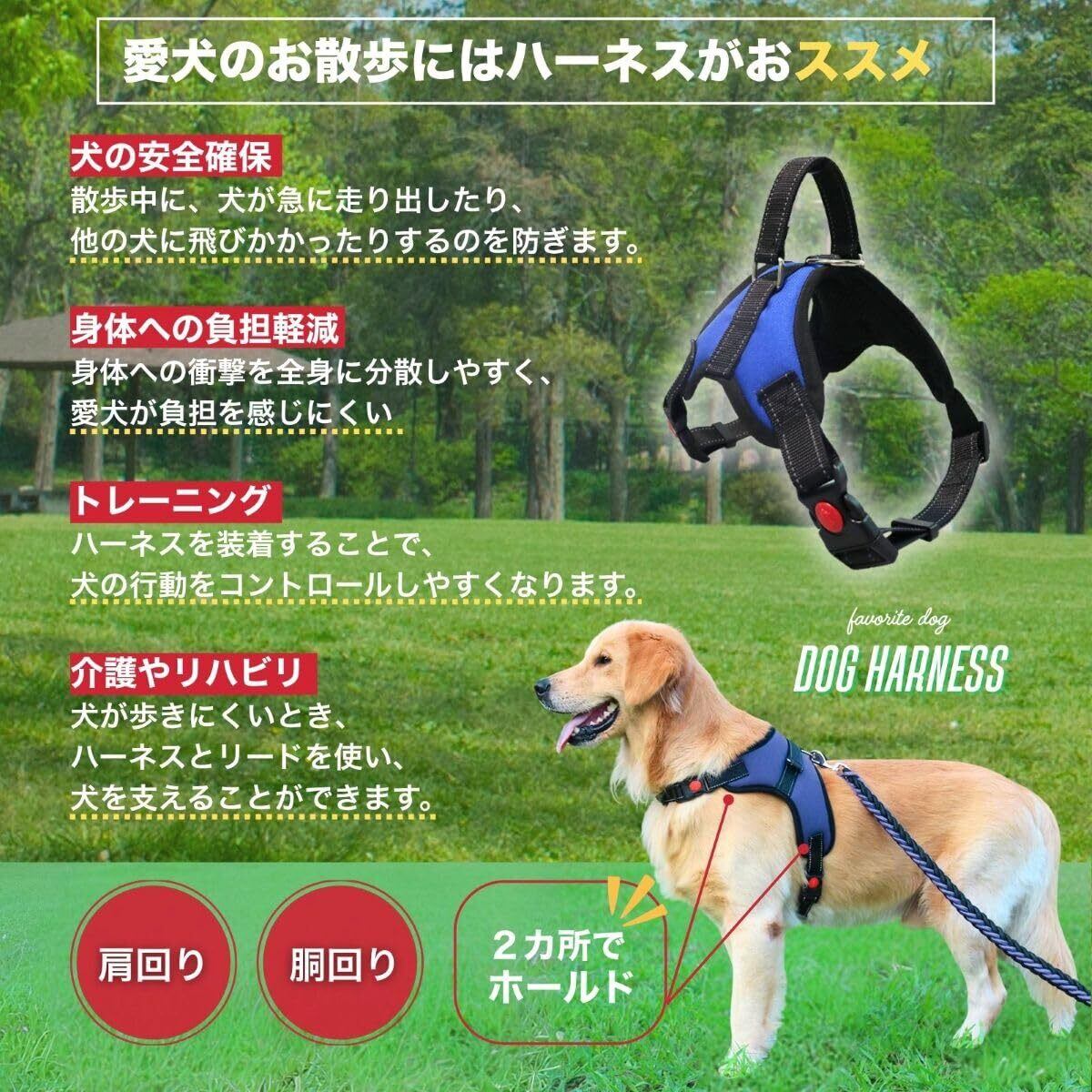 愛犬の快適性と安全性を追求した犬用ハーネス。体全体にフィットするデザインで、リードから伝わる衝撃をやさしく分散し、首や背中への負担を軽減。サイズ調整が可能で、小型犬から中型犬までしっかりフィットします。散歩やトレーニング、介護・リハビリなど幅広い用途に対応。装着も簡単で、忙しい日常でもスムーズにお出かけ準備が可能です。豊富なカラーとサイズ展開で、愛犬にぴったりのスタイルをお選びいただけます。安心・快適なお散歩タイムを、このハーネスで。