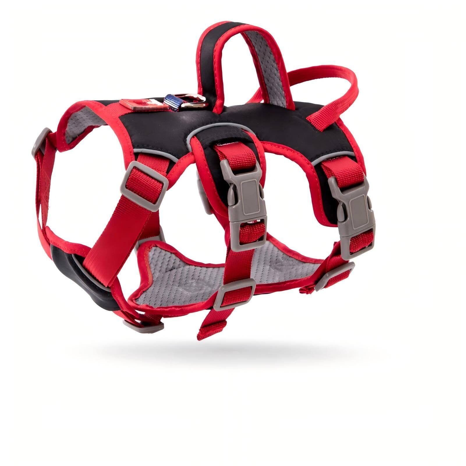 【柔らかなハンドル二つあり】:犬ハーネスはパッド入りのハンドルは二つあります。前のハンドルは愛犬を簡単に持ち上げ、障害物を乗り越えます、愛犬は他の動物出会ったり、道を横段したりする時、柔らかなハンドルのおかげで愛犬を簡単に持ち上げ、潜在の危険を防ぎます。後ろハンドルは安全ベルト用で、ペット乗車時、安全ベルト差し込みで、犬のいきなりの暴動と車からの脱出を防ぎます、ペットちゃんの安全を確保できるハーネスで、大薦めです。
